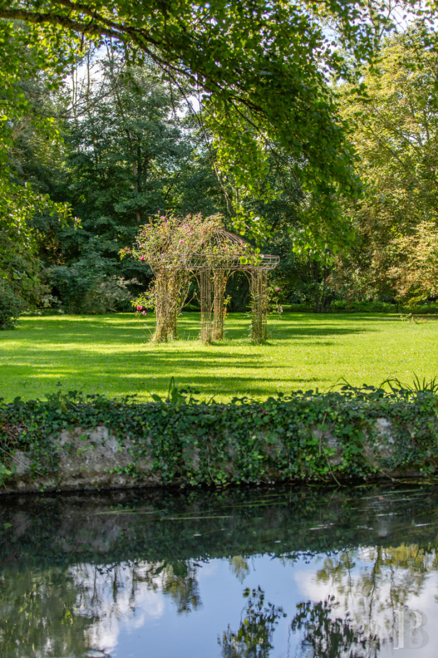 In addition, weeping willows near the former washhouse, magnolias, meticulously pruned ivy and white hydrangeas create a timeless tableau, while, to the south of the barn, a heated swimming pool of 11 x 5 metres, renovated in 2003, represents an ideal area for relaxation. Lastly, to the west of the mill, a more secluded area leads to an arbour festooned with ivy and honeysuckle and a poplar grove of approximately six hectares is located along the edge of the grounds.