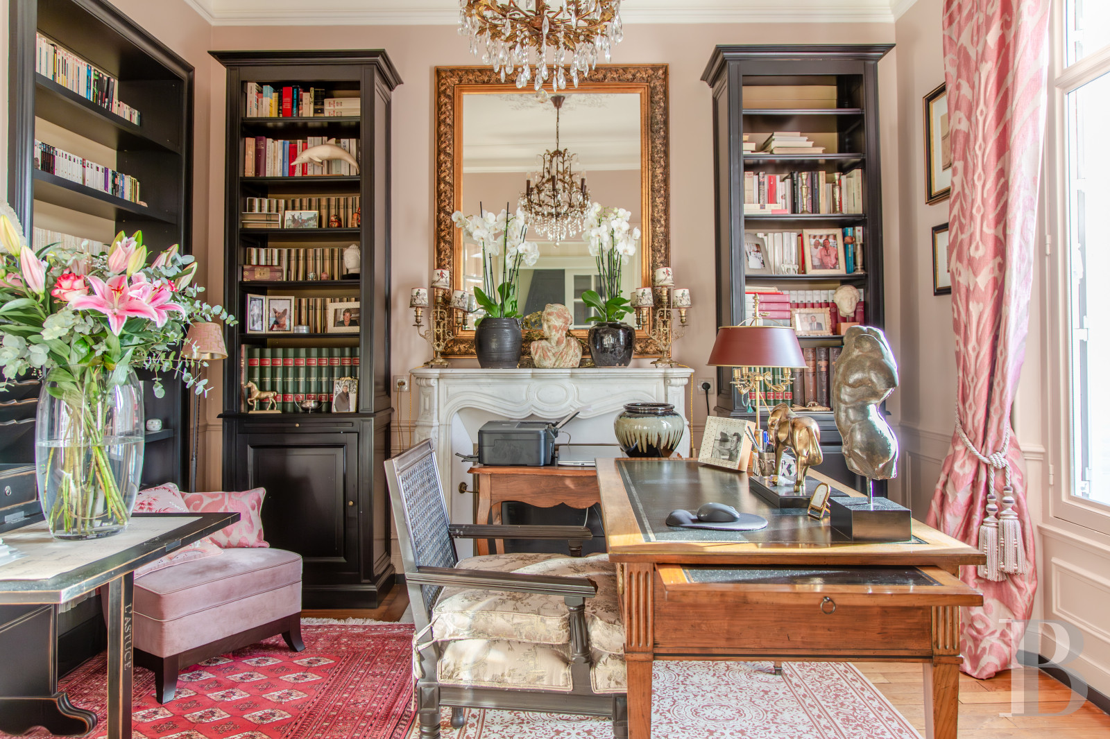 In addition, all these rooms feature narrow, straight-plank oak parquet floors, marble fireplaces, as well as wainscoting and crown moulding.