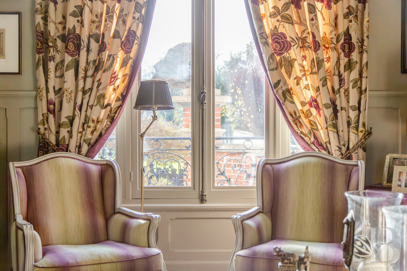 Mixing stone and brick, wood and wrought iron, the dwelling combines classical decorative refinement with modern comforts, which blend in seamlessly with its architectural style: from parquet floors to crown moulding, its surfaces and ornamentation showcase its first-rate materials, eye-catching colour palette, fluid design and delicate patterns, endowing the space with an understated vitality that the garden, meticulously maintained, extends into its verdant environment.