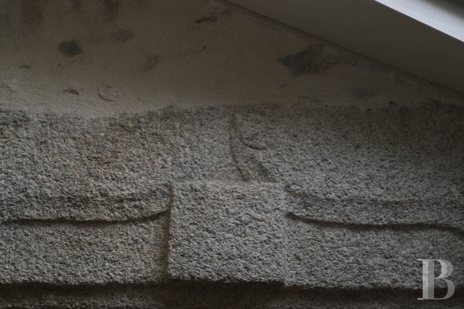 As for the courtyard, it abuts a garden and a patio, while the dwelling is accessible via granite front steps, crowned with a curved wrought-iron and glass awning. Featuring three different structures – the largest of which has two floors – under one orangey flat tile barrel roof, the whole was built over a basement level and topped with an attic, whereas its pointed schist rubble stone exteriors are highlighted with meticulously carved ashlar stone window/door surrounds and a lean-to was added on one side of the building.