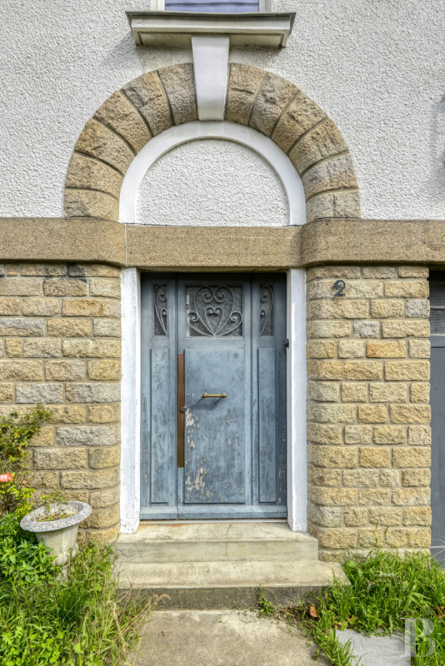 The entrance is marked by a large door at the end of a small courtyard that sets the house back from the street. The door is in the centre of the façade and is highlighted by a granite arch, giving the appearance of the house a monumental touch. The upper part of the painted wooden door is glazed, enabling light to filter into the entrance hall.
