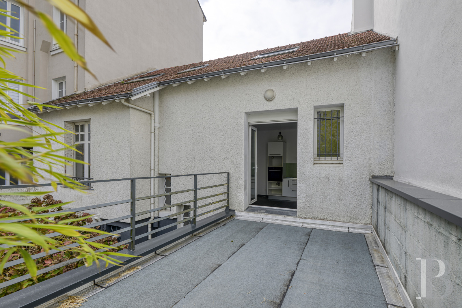 The garden at the rear of the house can currently be reached via the cellar and a small flight of concrete steps. The first level is made up of artificial turf and leads, via several steps, to a lawned and fenced garden. A gate leads to the communal spaces belonging to the neighbouring condominium. The patio is on the same level as the kitchen and overlooks the garden. Its surface needs to be renovated and this could provide the opportunity to install steps down to the lawned area. In order to fully enjoy it and create more privacy from the neighbours, it needs to be completely reorganised.