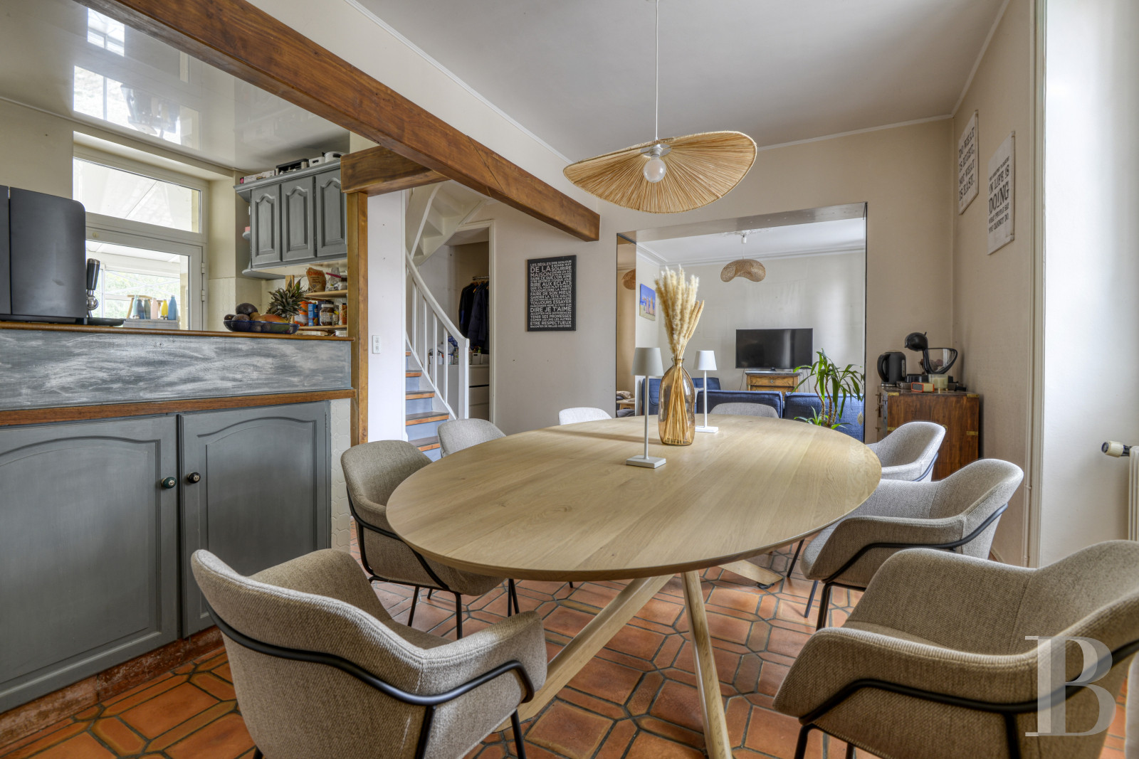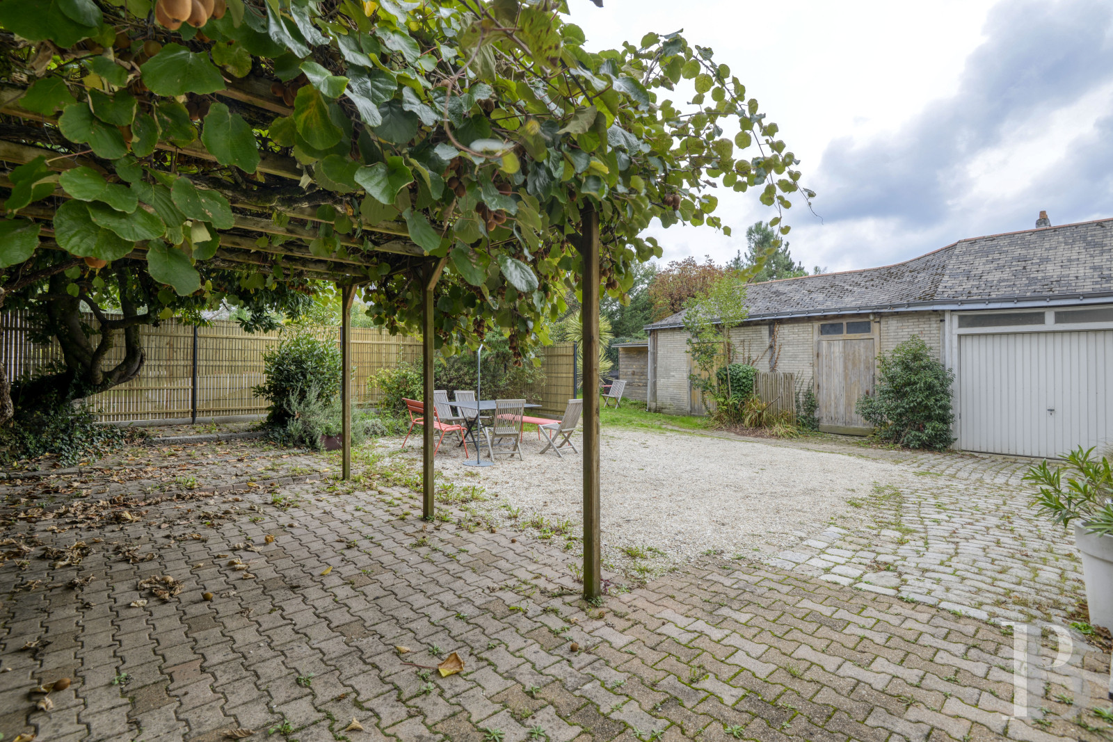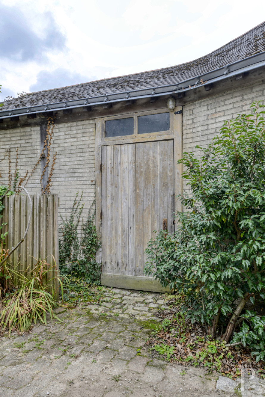 As for the dwelling’s overall silhouette, it is accentuated by a slate gable roof and a brick chimney, typical of houses in the area, while its right-angle wing features an understated and, yet, elegant conservatory, inspired by the 19th century, with its latticework windows and glazed pediment, which helps open up the dwelling towards the verdant cobblestone courtyard.