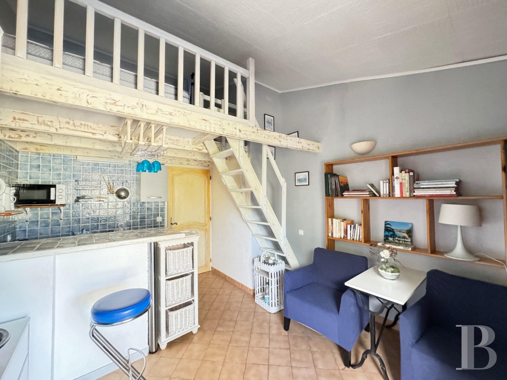 Upstairs, the dwelling contains a study, located on the mezzanine, three bedrooms – including one with its own terrace providing beautiful views of the sea – as well as a shower room, whereas rectangular or hexagonal terracotta floor tiles can be found in most of the rooms, except in several of the bedrooms, which feature sprung flooring.