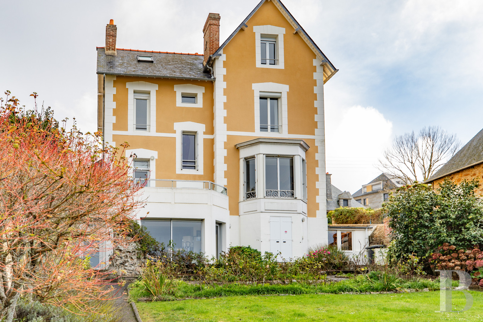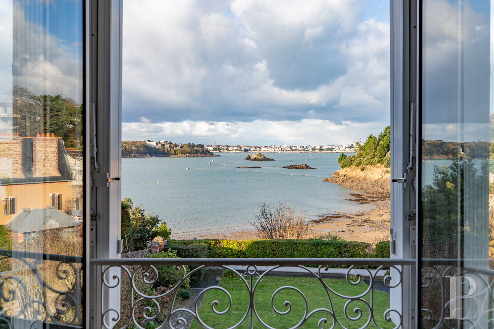 The charming town of Saint-Malo is a gem on the stunning Emerald Coast in north-east Brittany. The coastal town, formerly a port of privateers, draws countless visitors each year for its built heritage, history and natural backdrop. The house stands in the residential area of Saint-Servan, a former town that has been part of Saint-Malo since 1967. The surroundings are calm and dotted with elegant holiday homes. Nearby, less than 15 minutes away on foot, there are schools, shops and amenities, as well as a covered market and beaches. The old walled town of Saint-Malo is a 30-minute walk away and is only 10 minutes away by bicycle. The train station is less than 10 minutes away by car. From there, you can get to the city of Rennes in barely an hour by rail and to Paris in less than three hours by rail. And from Saint-Malo port, ferries take you to England and the Channel Islands of Jersey and Guernsey.