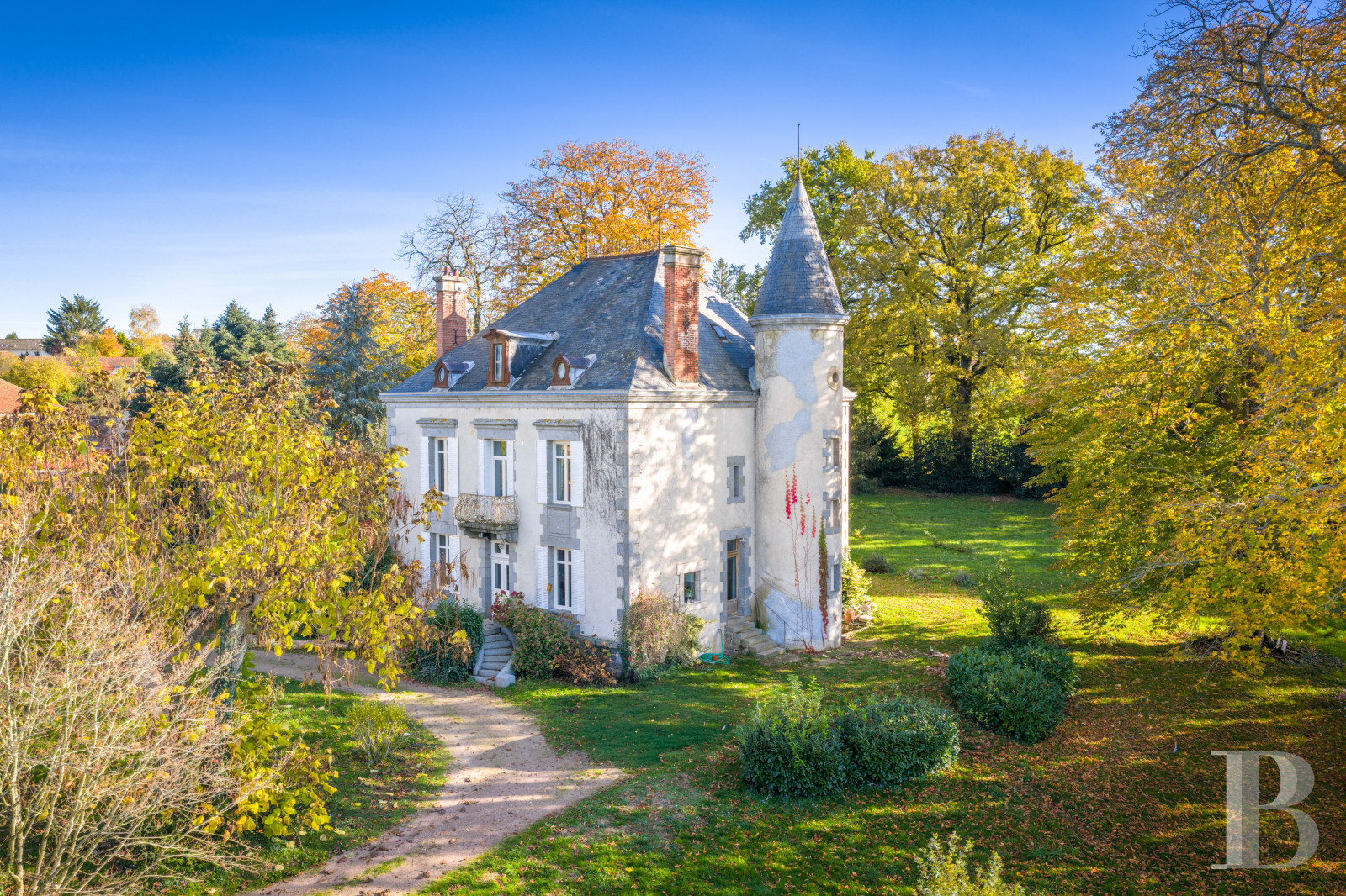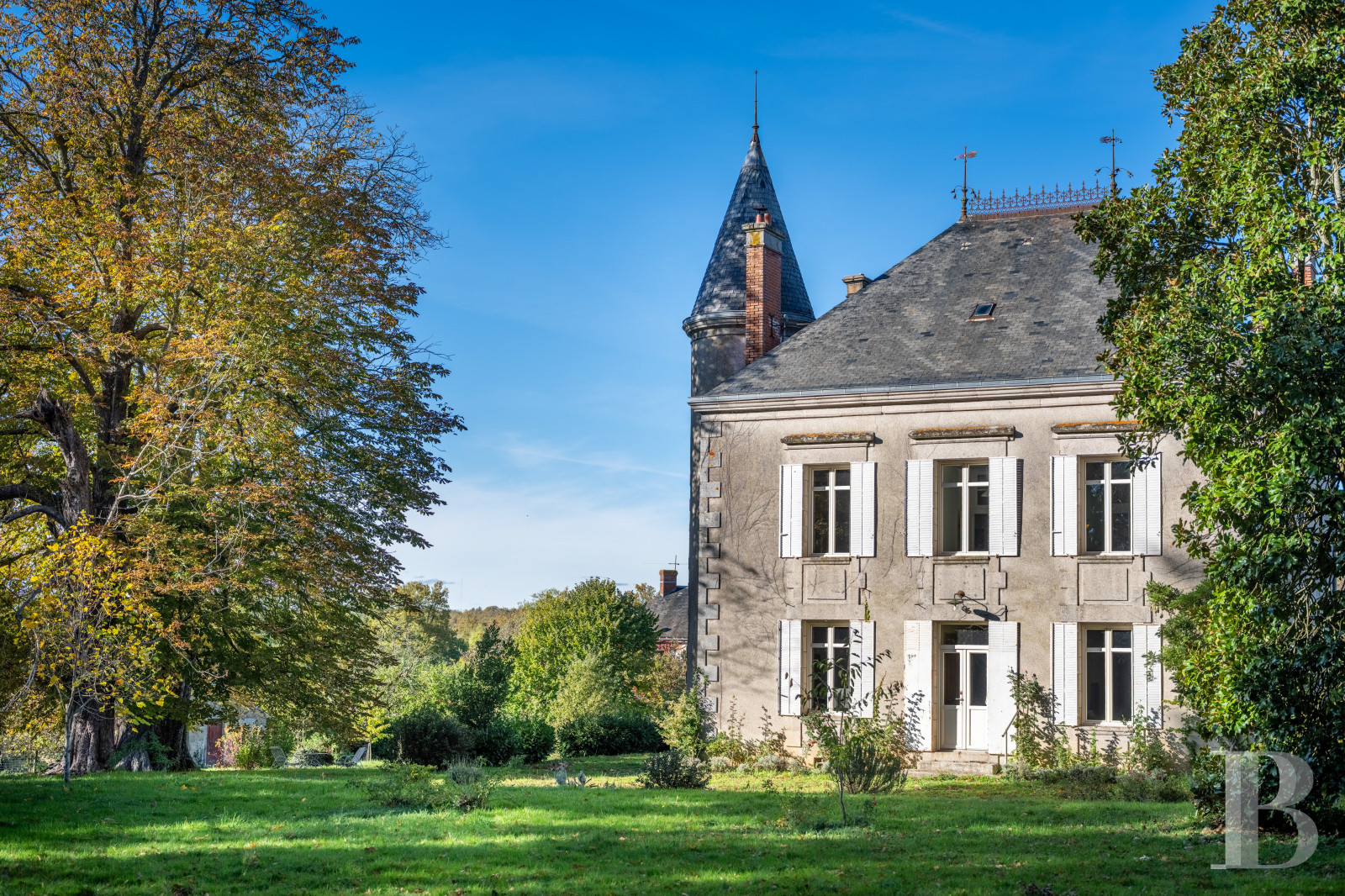 As for its tower, abutting the dwelling’s western side, it endows the whole with the stately appearance of a small chateau surrounded by enclosed grounds alternating between multi-century trees and local varieties.