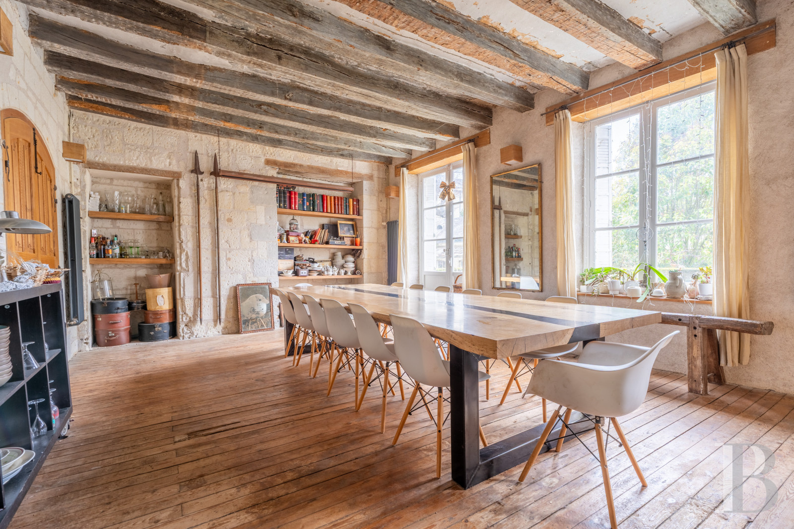 This building has been insulated, fitted with air conditioning and transformed into a single-storey family holiday let with a capacity for up to eight people. It is made of tuffeau stone and topped with by a slate roof. A glass and metal awning runs all along the facade, on which seven windows alternate with four glazed doors corresponding to the original rooms, namely three classrooms and a refectory. Light streams in through the tall windows and doors with low, basket-handle arches.