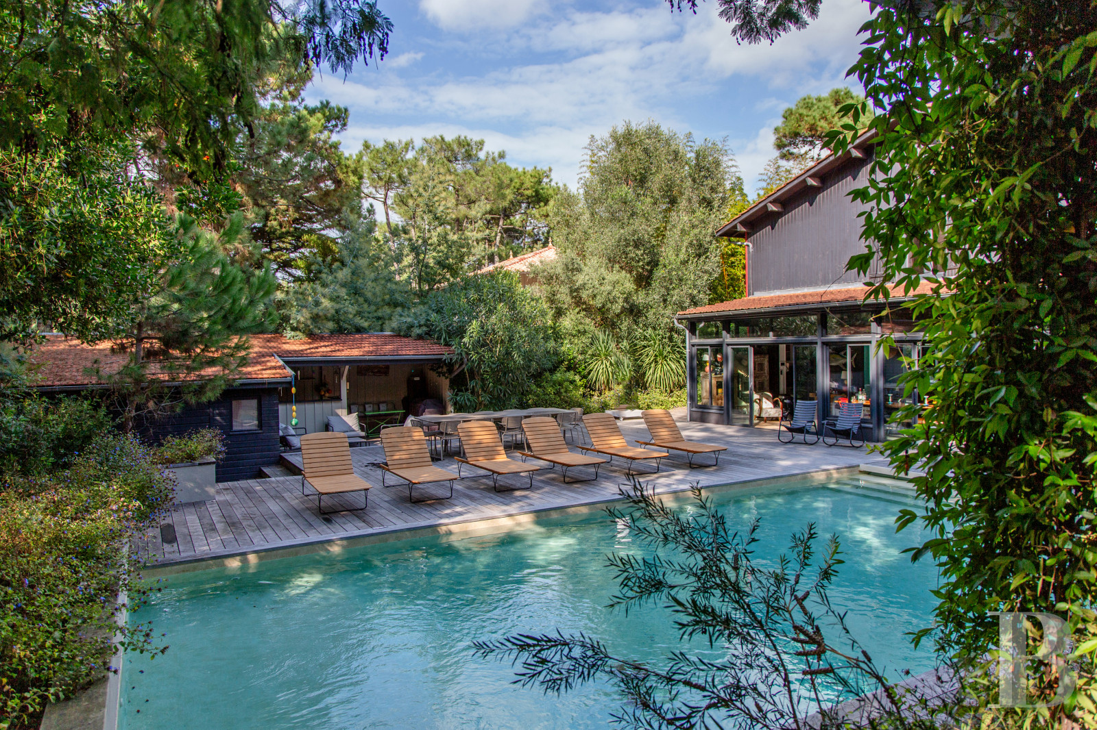 In the department of Gironde, at the tip of the Cap Ferret peninsula, the landscape alternates between the banks of Archachon Bay and the ocean’s salty spindrift. In addition, oyster-farming villages, hidden jetties and a vast pine forest create a unique environment, between ocean and woodland, while the dwelling, with its prime address, is sheltered from view along the edge of the pine forest.