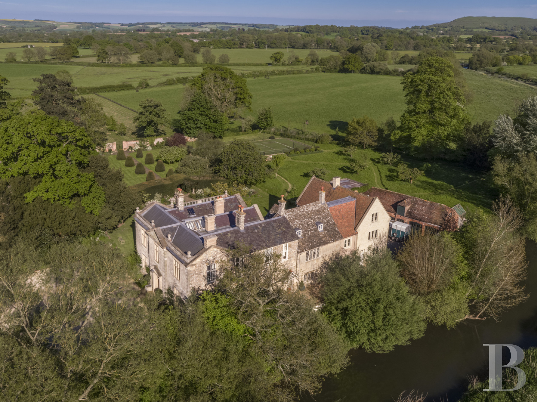 There are some residences that cannot be visited: they call out silently, like a preserved testimony to the past. Nestled amid landscaped gardens and centuries-old woods, Manston House stands in the Dorset countryside, a discreet guardian of Georgian elegance. Listed as a Grade II building, it displays the harmonious proportions of its era and shares its history with a twenty-hectare estate bordered by the River Stour. Every original feature bears the mark of time: antique fireplaces, interior shutters, mouldings, restored by the craftsmen of R. Moulding & Co. The interior layout reflects a preserved balance: spacious living rooms, library, study, family dining room and bedrooms spread over two floors. The place invites you to live in a home that precedes and extends those who choose it. The gardens unfold without ostentation, accompanied by gravel paths, tennis courts and stables. The separate lodge, with its own access, offers accommodation possibilities. The size and location allow for a variety of projects, while taking advantage of the proximity to amenities and direct access to London.