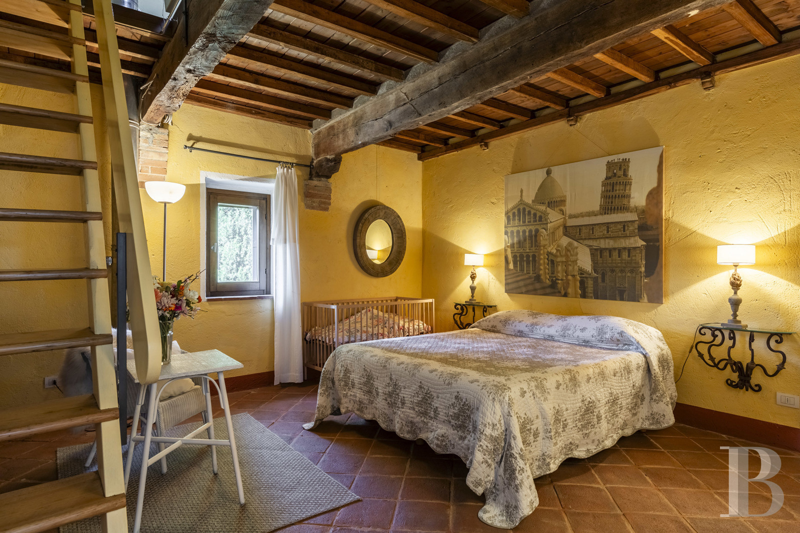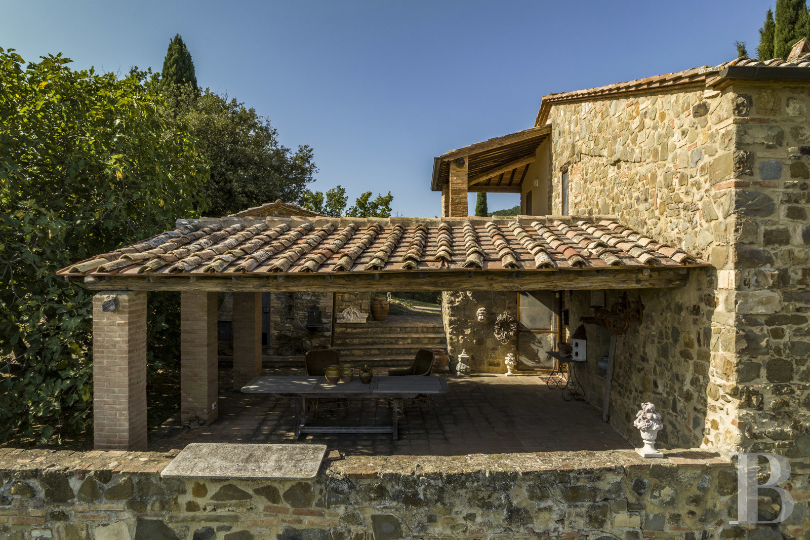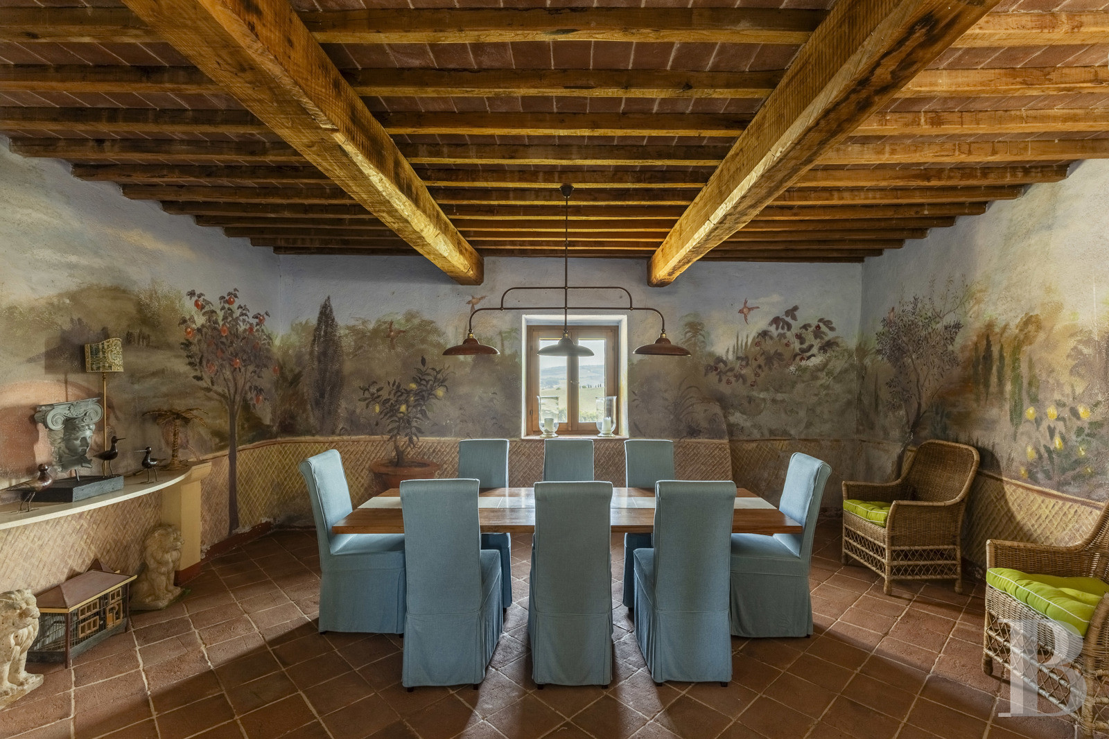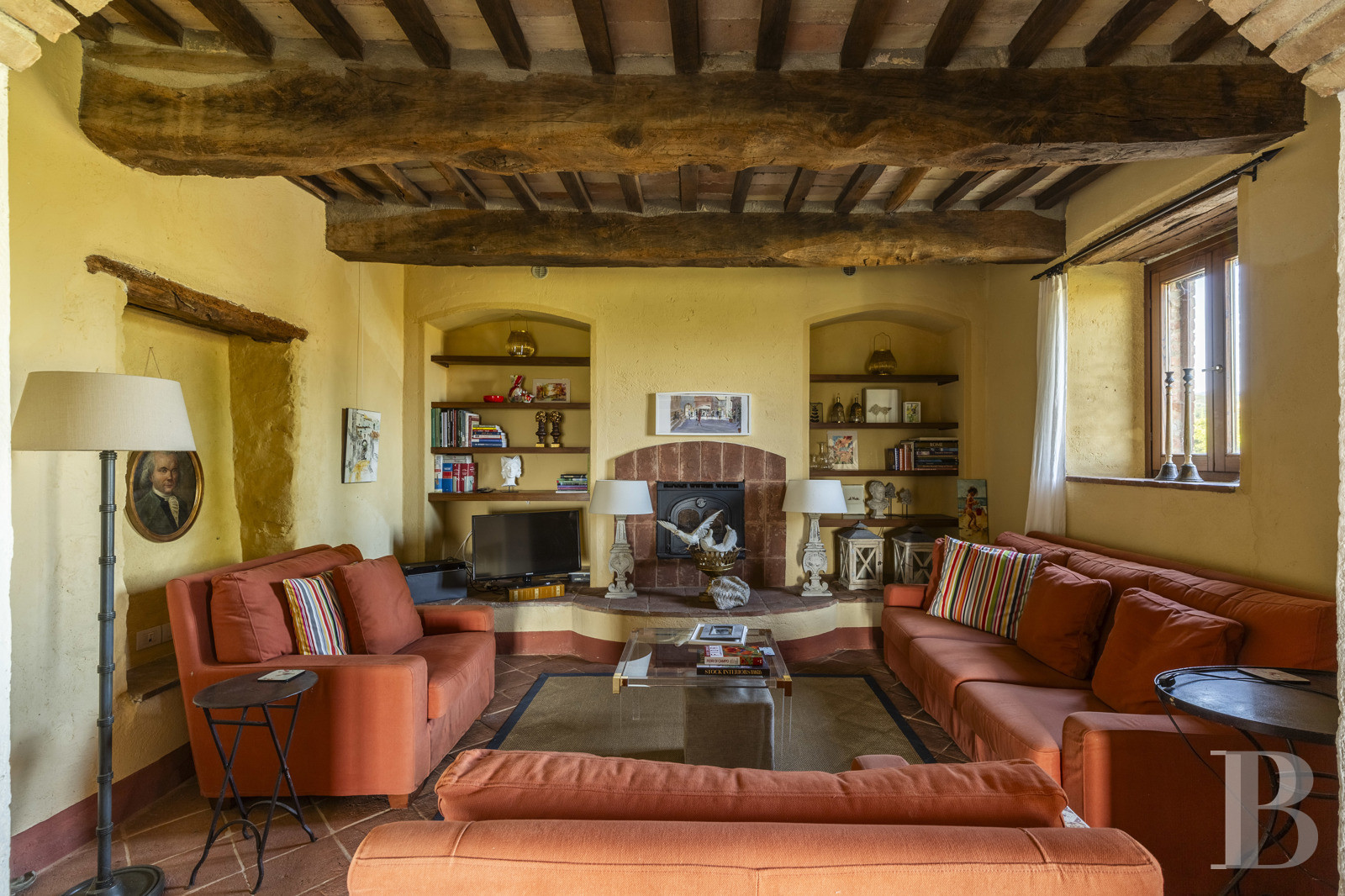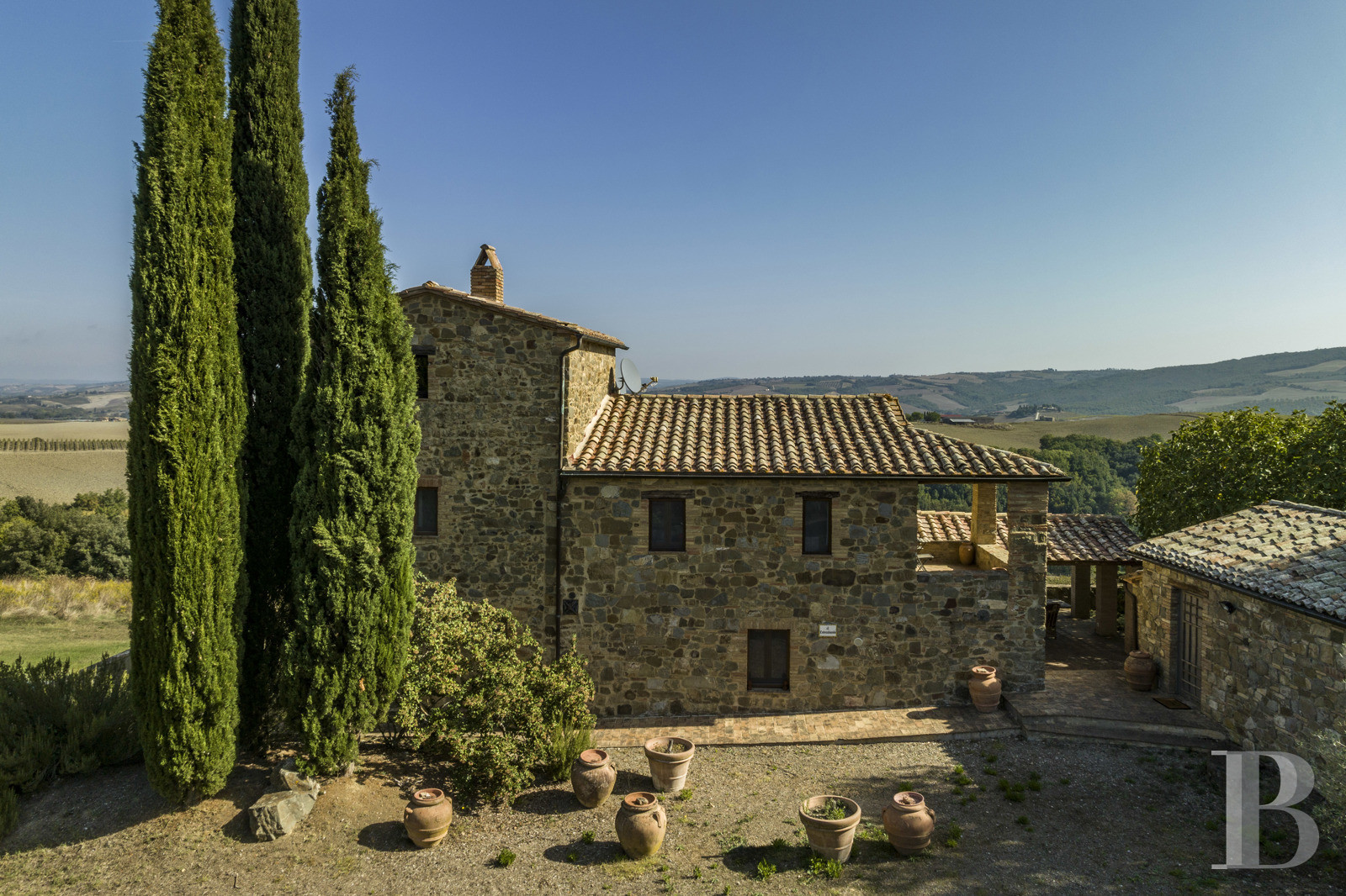 Here, stone is not merely used to build a shelter: it blends in with the landscape. The large windows of the house frame the Val d'Orcia like so many perspectives where the light changes throughout the day. The cypress trees that dot the property provide vertical landmarks in the rolling hills. Inside, brick arches divide the spaces without partitioning them. The spaces can be adapted to different uses: permanent residence or temporary accommodation. The infinity pool extends the view towards Montalcino and its vineyards. The house retains that rare quality of allowing everyday life to be directly connected to the Tuscan countryside, between centuries-old olive trees and winding roads leading to the Brunello cellars.