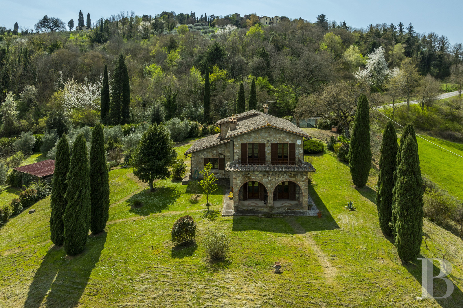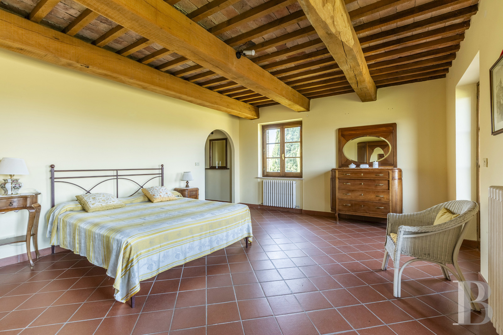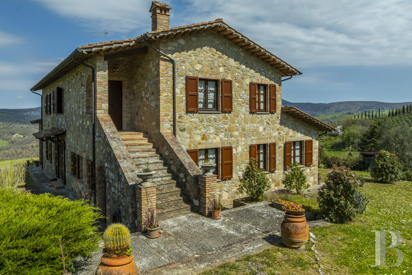 A Tuscan residence in the heart of Val d'Orcia, between Siena and Lake Trasimeno. The residence has three floors and features spacious rooms flooded with natural light. The living room occupies the ground floor, along with a kitchen and several service areas. Upstairs, the bedrooms benefit from high ceilings and unobstructed views of the surrounding countryside. The basement houses a vaulted tavern, a multipurpose space whose use remains to be defined. The garden surrounds the house on several sides, structured around a swimming pool facing the hills. Agricultural land extends the property, planted with olive trees still in production. San Casciano dei Bagni is a few kilometres away: a spa village renowned for its springs and its recently discovered Roman archaeological site. A property that offers the dual possibility of a permanent residence or a tourist accommodation business.
