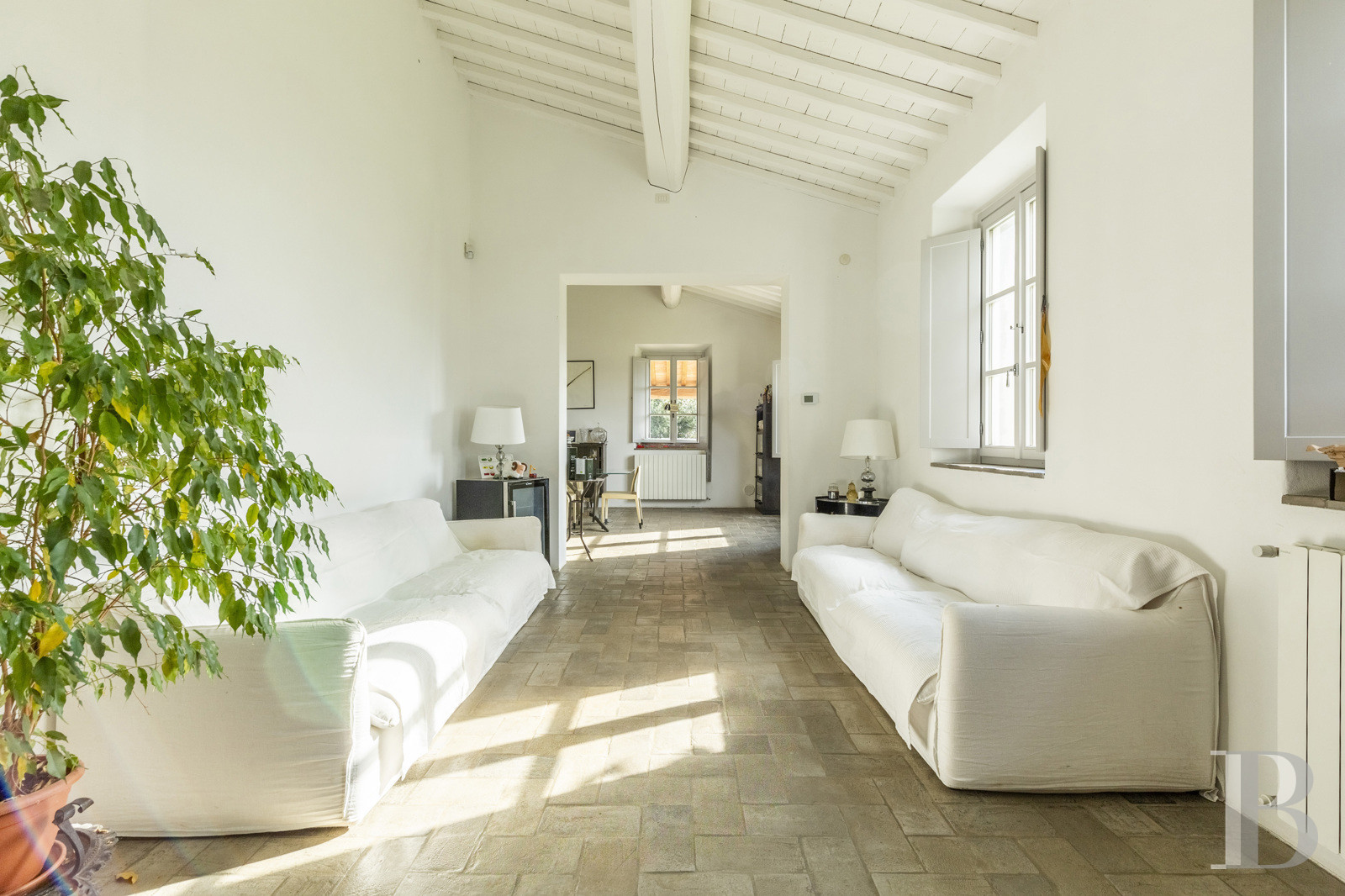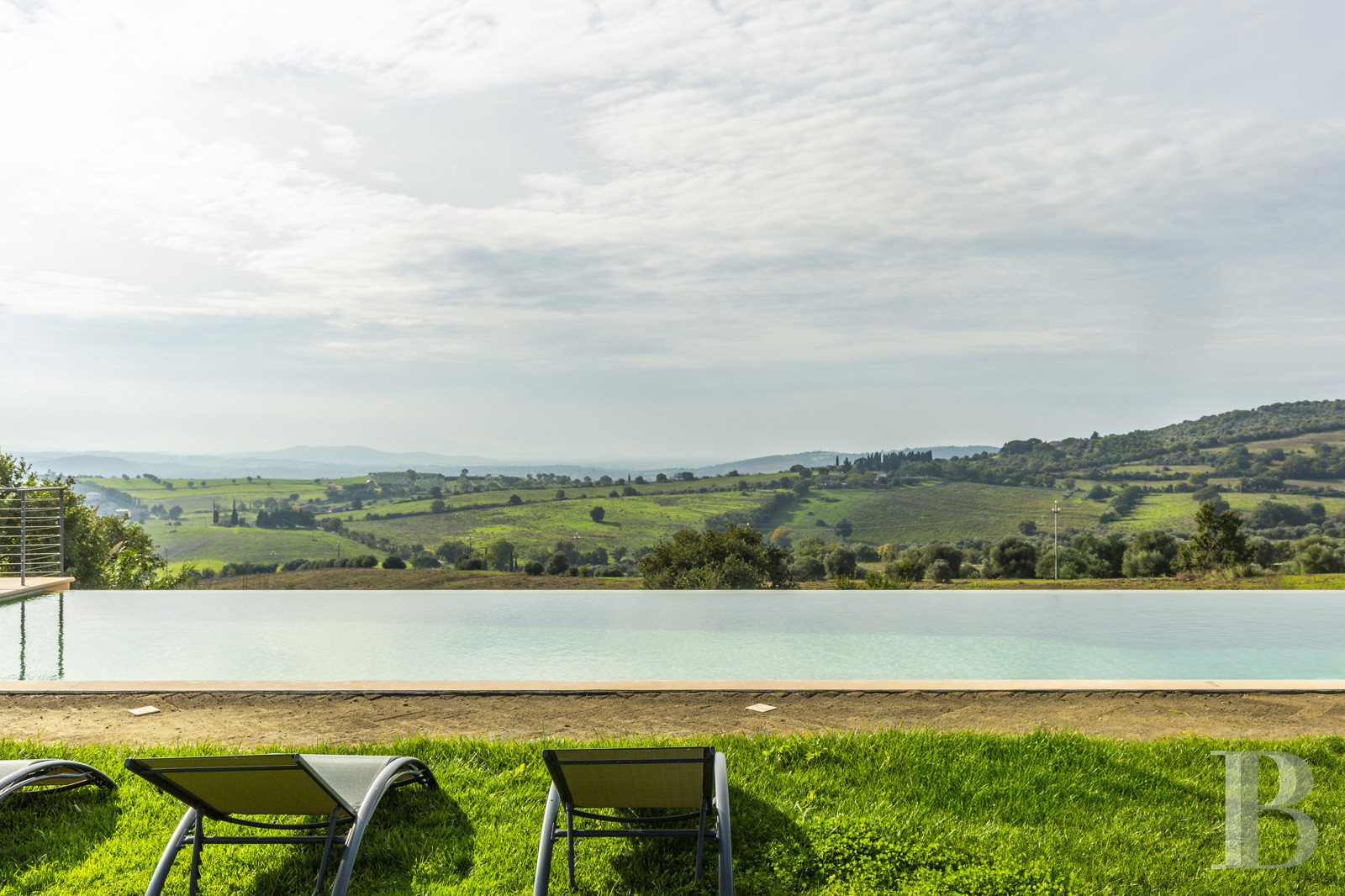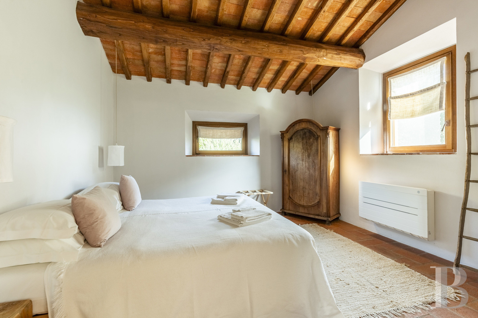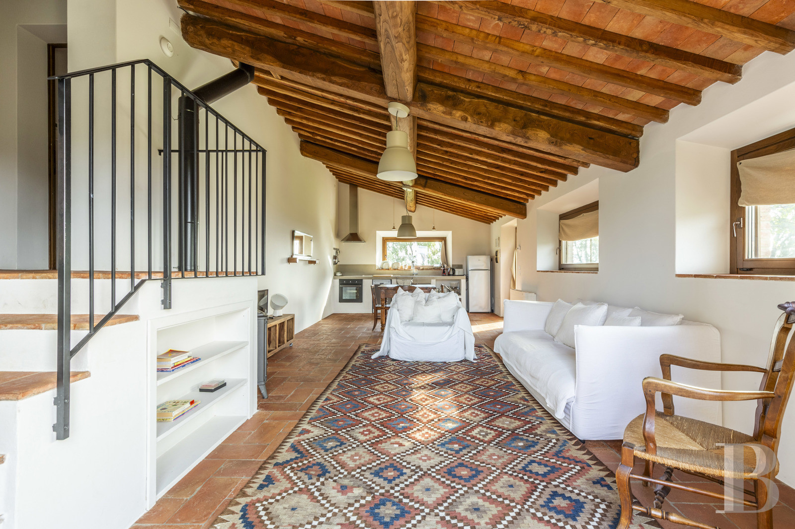 a restored Tuscan residence set on forty-three hectares with olive groves and stone outbuildings.