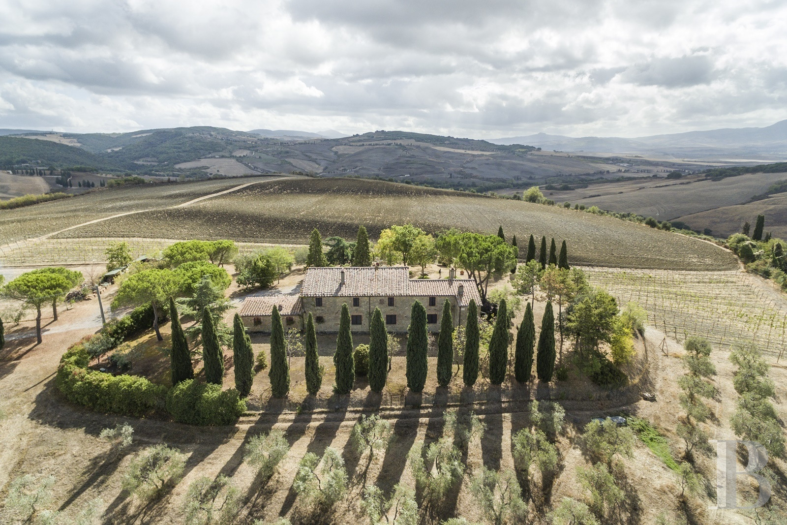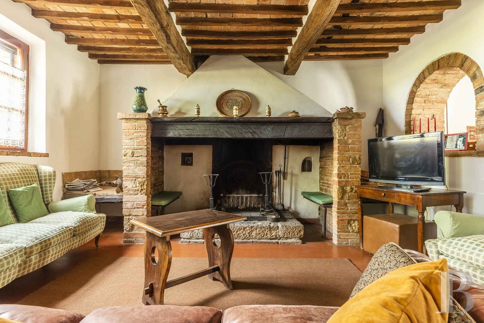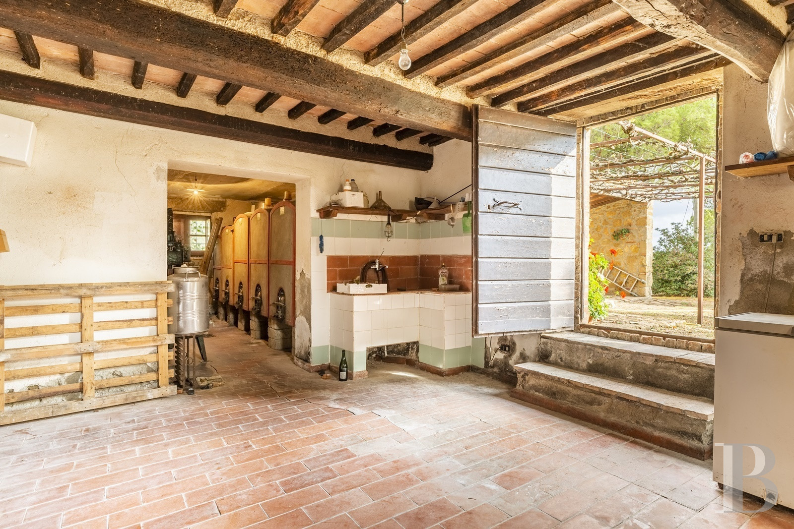 The roads leading to the property wind through the hills of Val d'Orcia as if crossing centuries. Time seems to have stood still in the years when buildings were constructed to last. The surrounding landscape has hardly changed since UNESCO listed it: rows of cypress trees, orderly vineyards, silvery olive trees on gentle slopes. The house retains the tranquil presence of rural Tuscan buildings: 470 square metres spread over two floors, with thick walls that have weathered the seasons. It is surrounded by five hectares of cultivated land, with vineyards, olive trees and meadows bearing witness to agricultural activity that is waiting to be revived. The equipment remains on site. A new lease of life is needed to adapt the place to current requirements while preserving its timeless character.