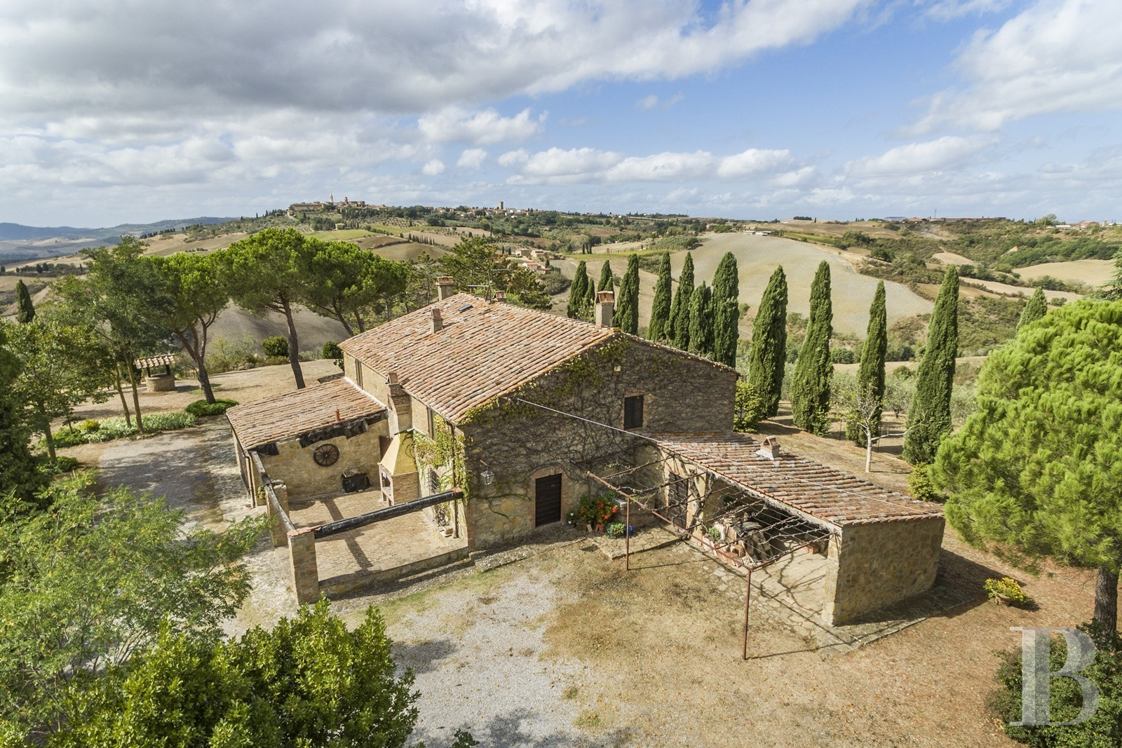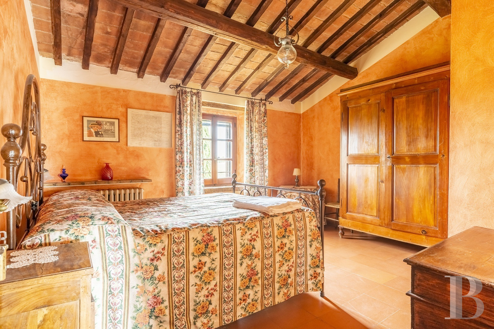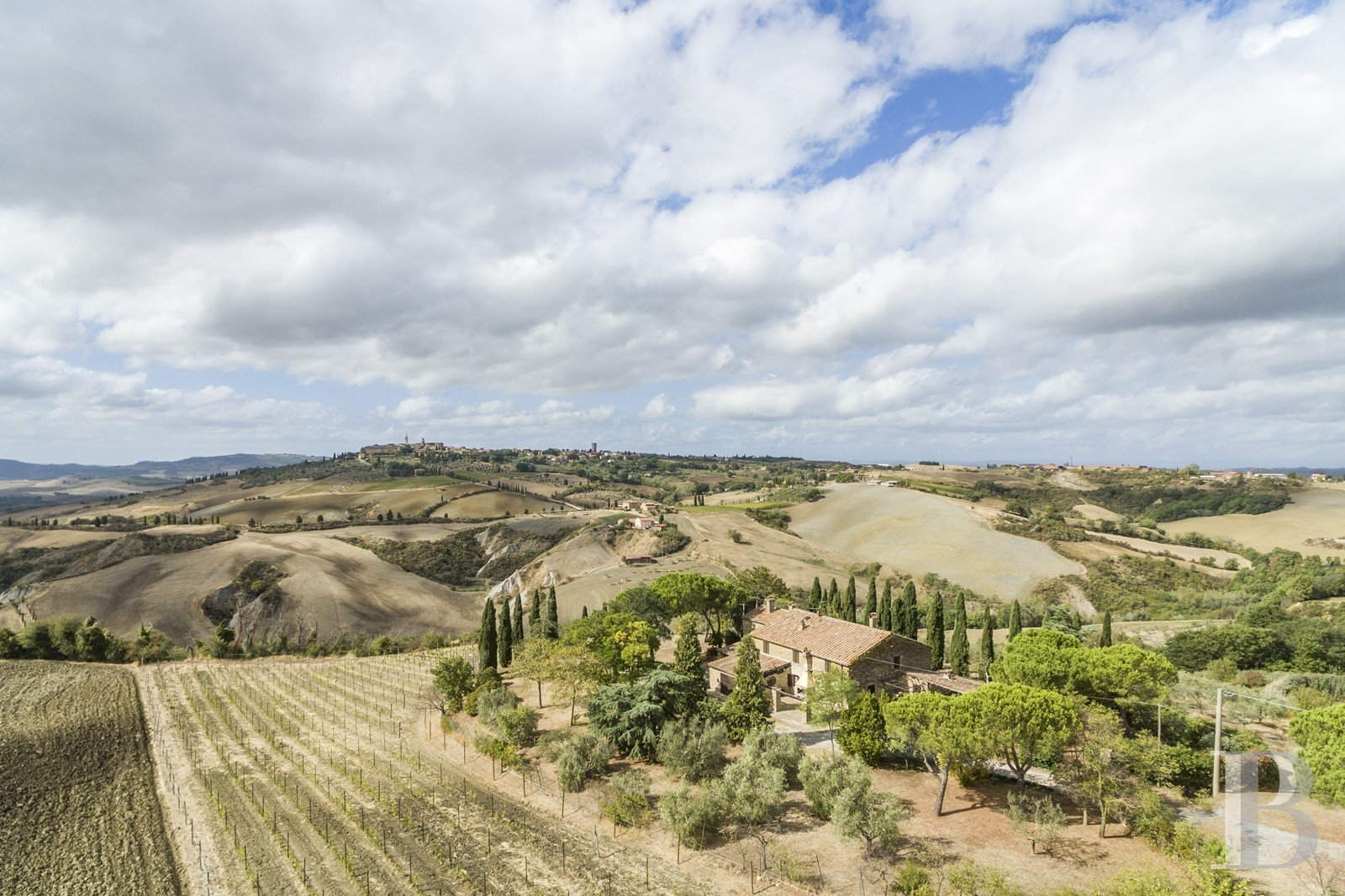 The roads leading to the property wind through the hills of Val d'Orcia as if crossing centuries. Time seems to have stood still in the years when buildings were constructed to last. The surrounding landscape has hardly changed since UNESCO listed it: rows of cypress trees, orderly vineyards, silvery olive trees on gentle slopes. The house retains the tranquil presence of rural Tuscan buildings: 470 square metres spread over two floors, with thick walls that have weathered the seasons. It is surrounded by five hectares of cultivated land, with vineyards, olive trees and meadows bearing witness to agricultural activity that is waiting to be revived. The equipment remains on site. A new lease of life is needed to adapt the place to current requirements while preserving its timeless character.