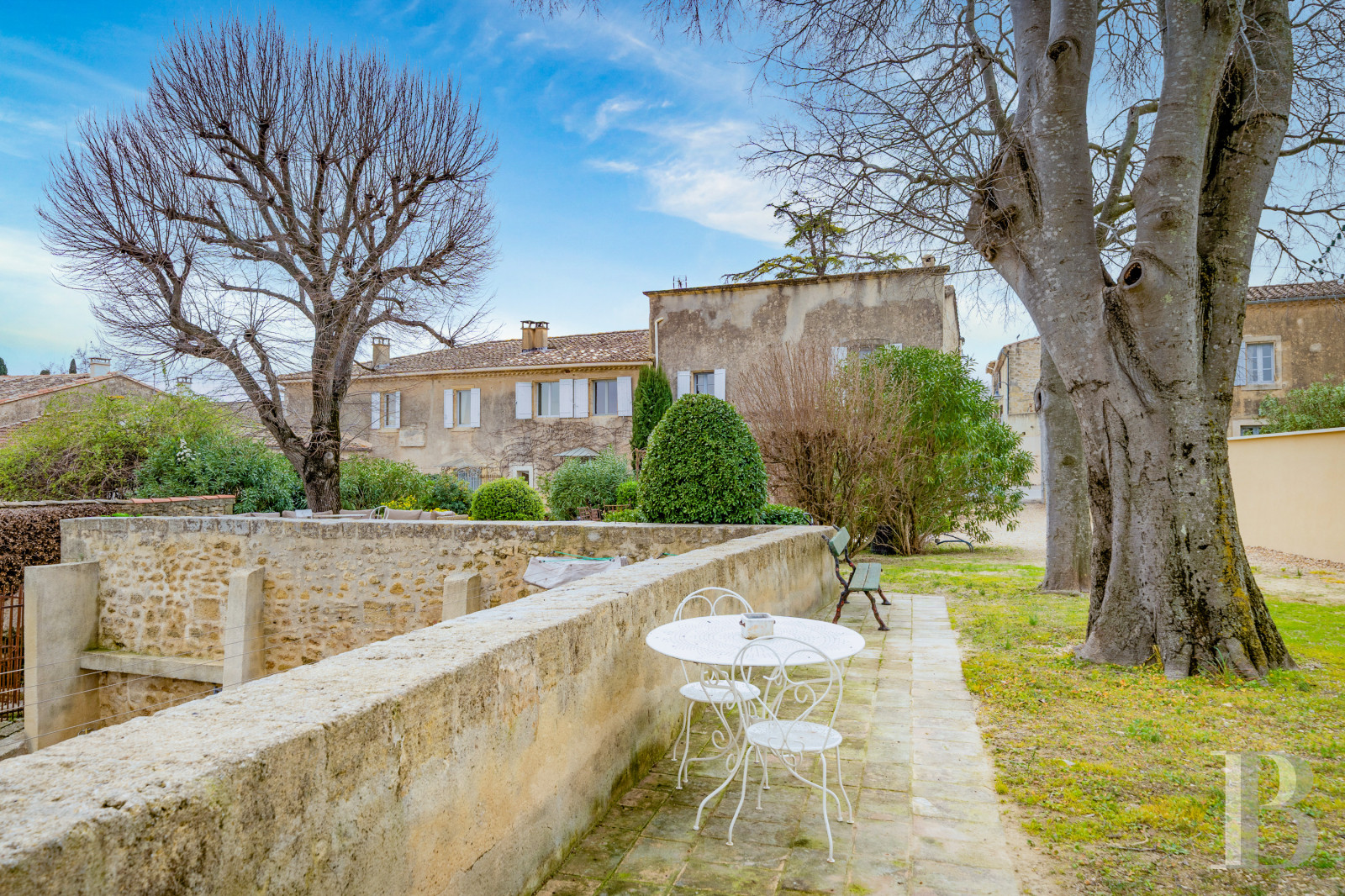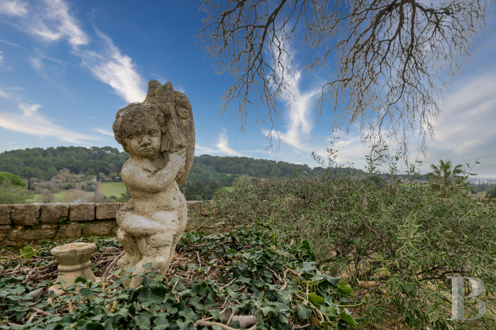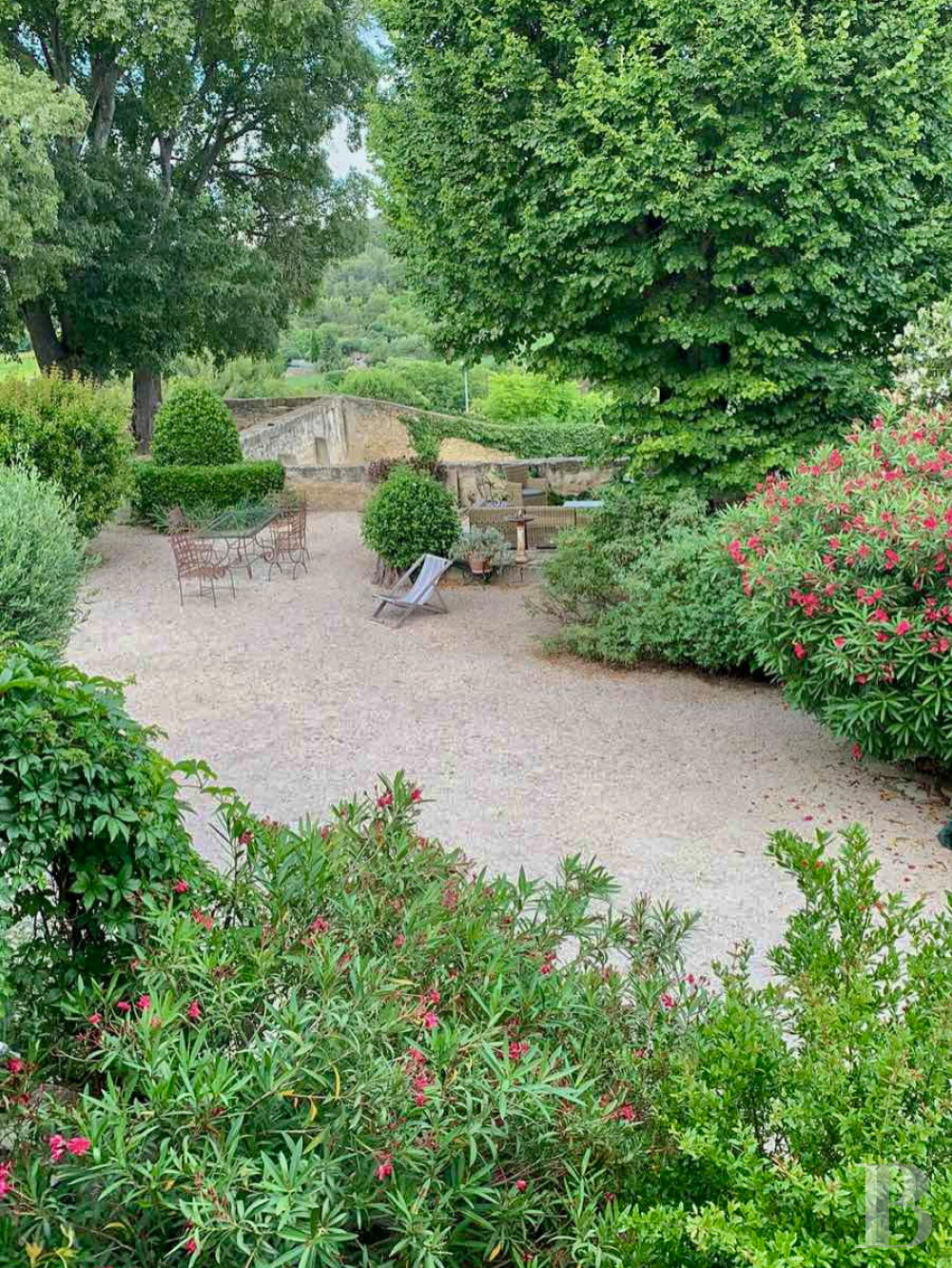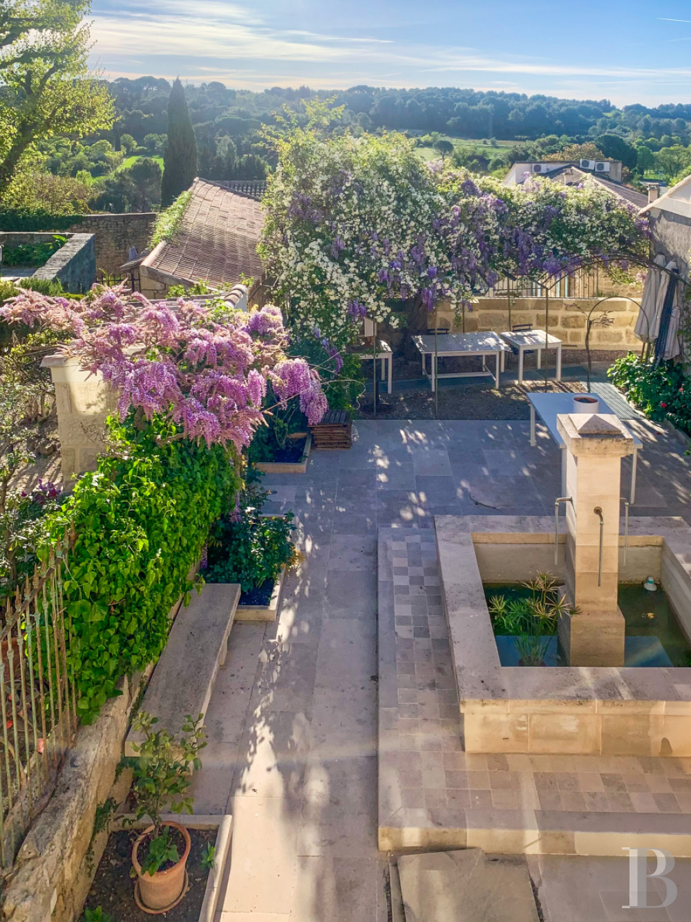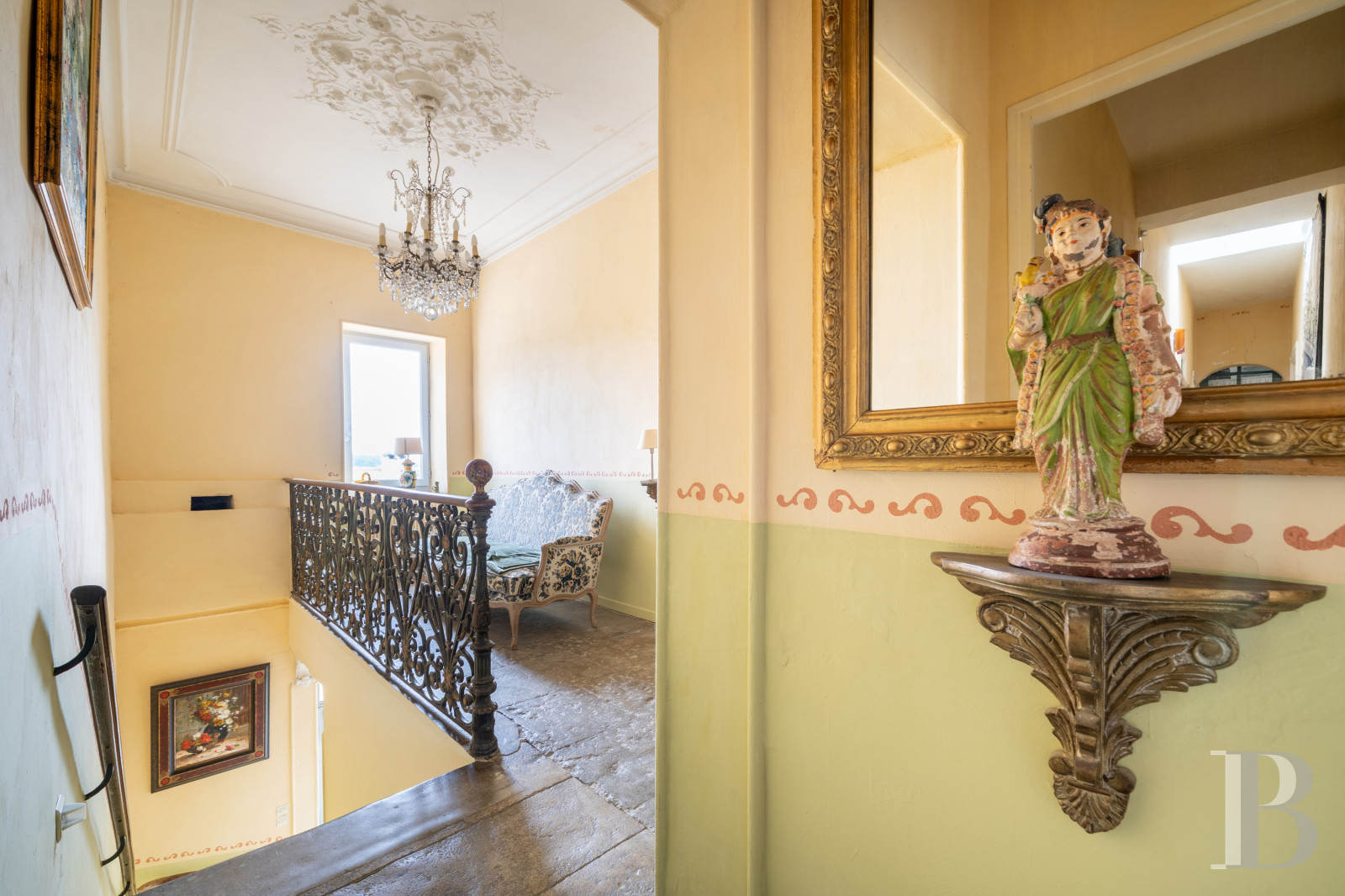 The stone staircase, safeguarded by a wrought-iron bannister, leads to a landing with grey Montpellier barre limestone floors. Each of the five bedrooms on this floor, accessible via a small corridor from the landing, comes with its own shower room or bathroom and all look out on to both the courtyard and garden, ensuring dual-aspect light that changes with the seasons.