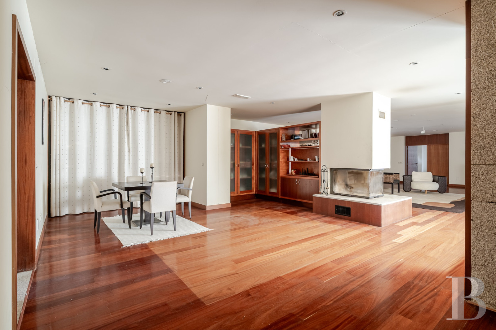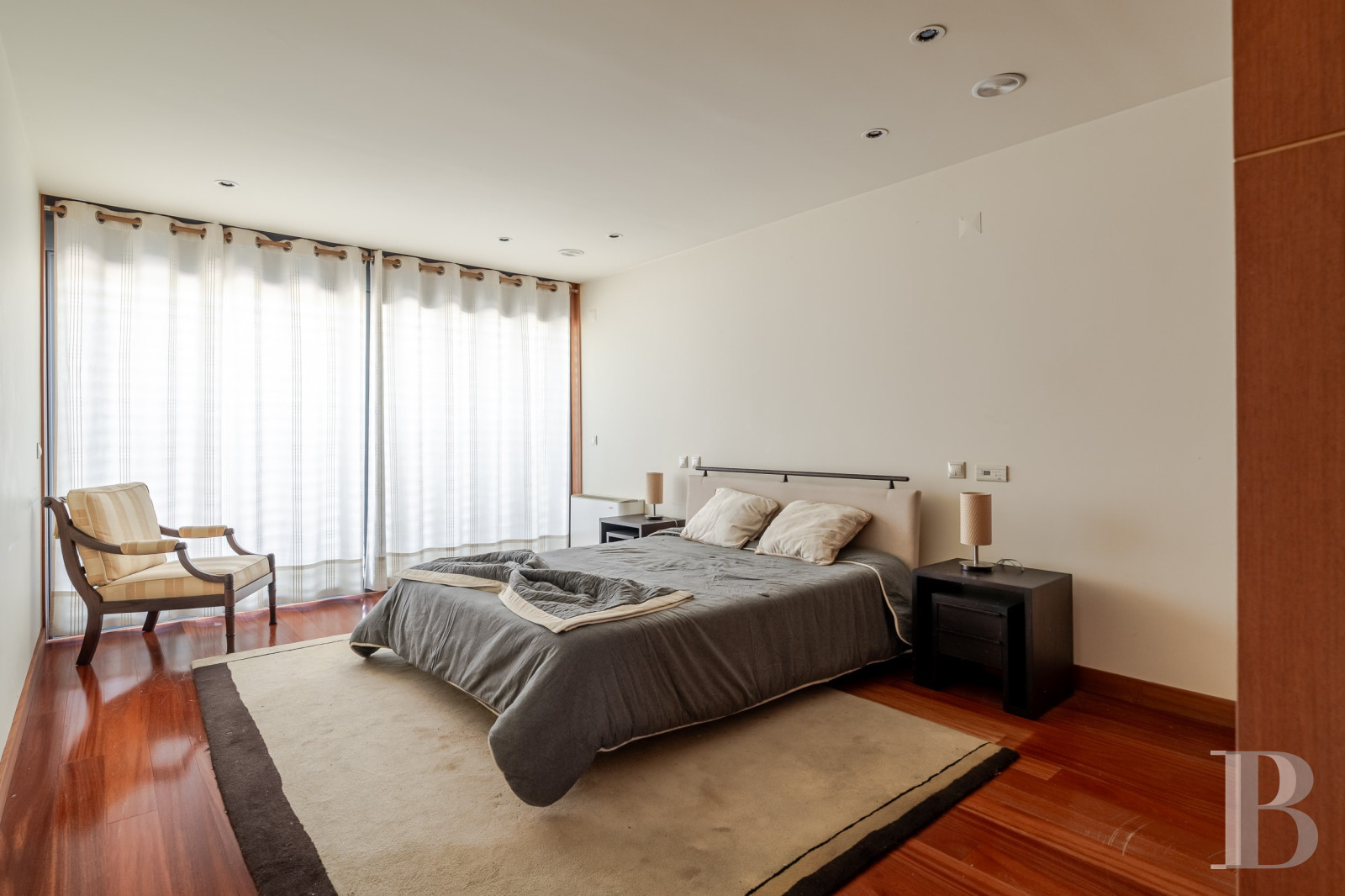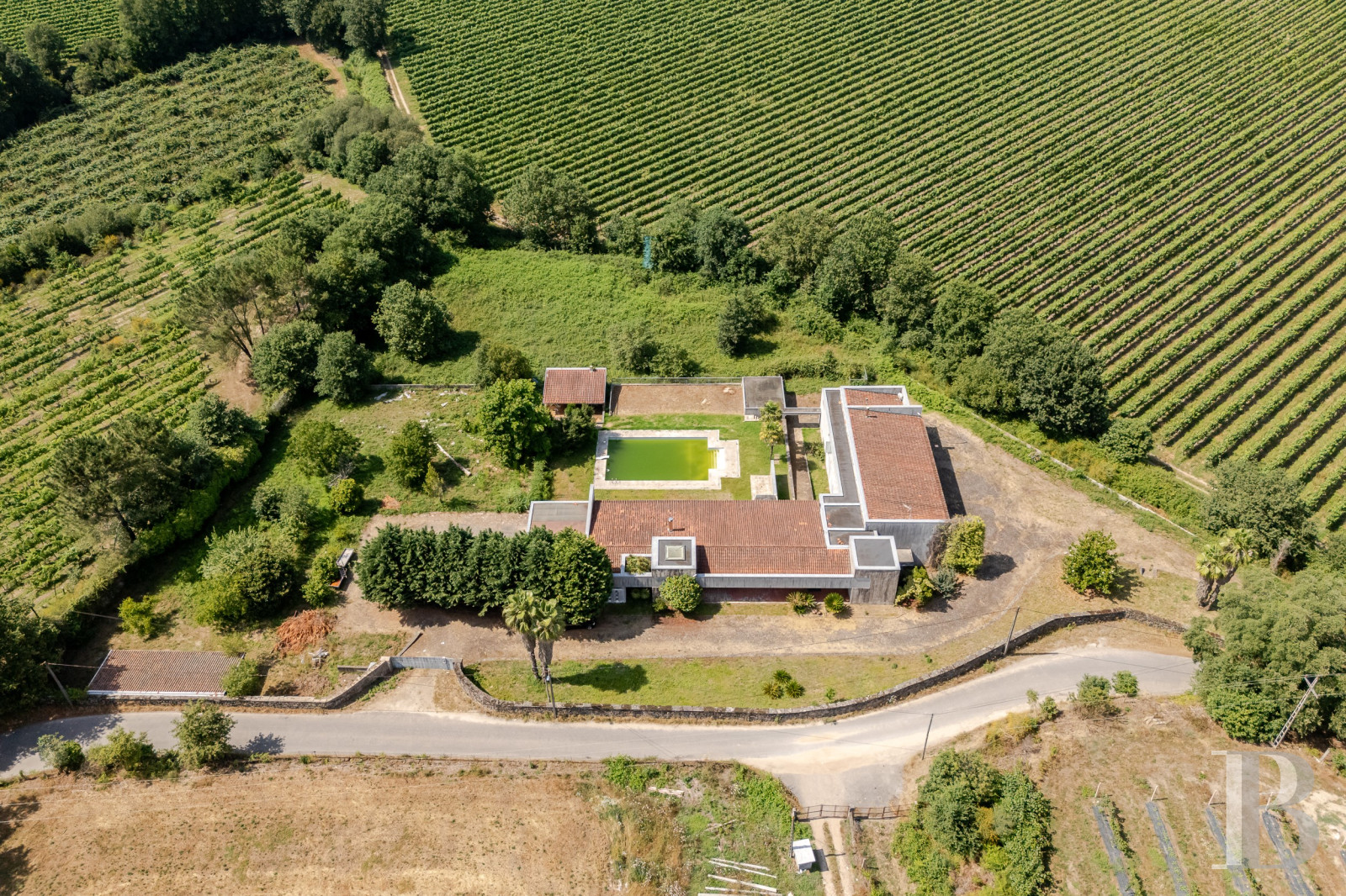 The Minho countryside stretches out quietly, dotted with fruit trees and ancient vegetation. A contemporary villa occupies 10,000 m² of land, far from busy roads. Days are spent between the swimming pool and gardens, cooking in the summer kitchen under the trees, and dining in one of the two living rooms connected by a double-sided fireplace. Five suites are spread across the private area, separated from the communal spaces by a slight change in level. The office allows for remote working, while the laundry room takes care of everyday tasks. The annex can be used as a gym, cinema or squash court, depending on your needs. An interior garden brings light into the centre of the house. Living here means loving silence, space and the possibility of entertaining on a grand scale without ever feeling cramped.