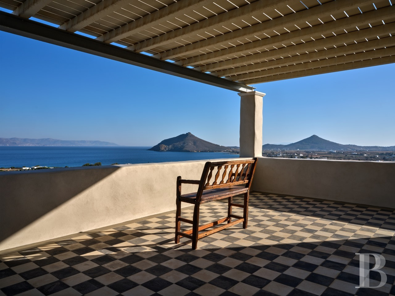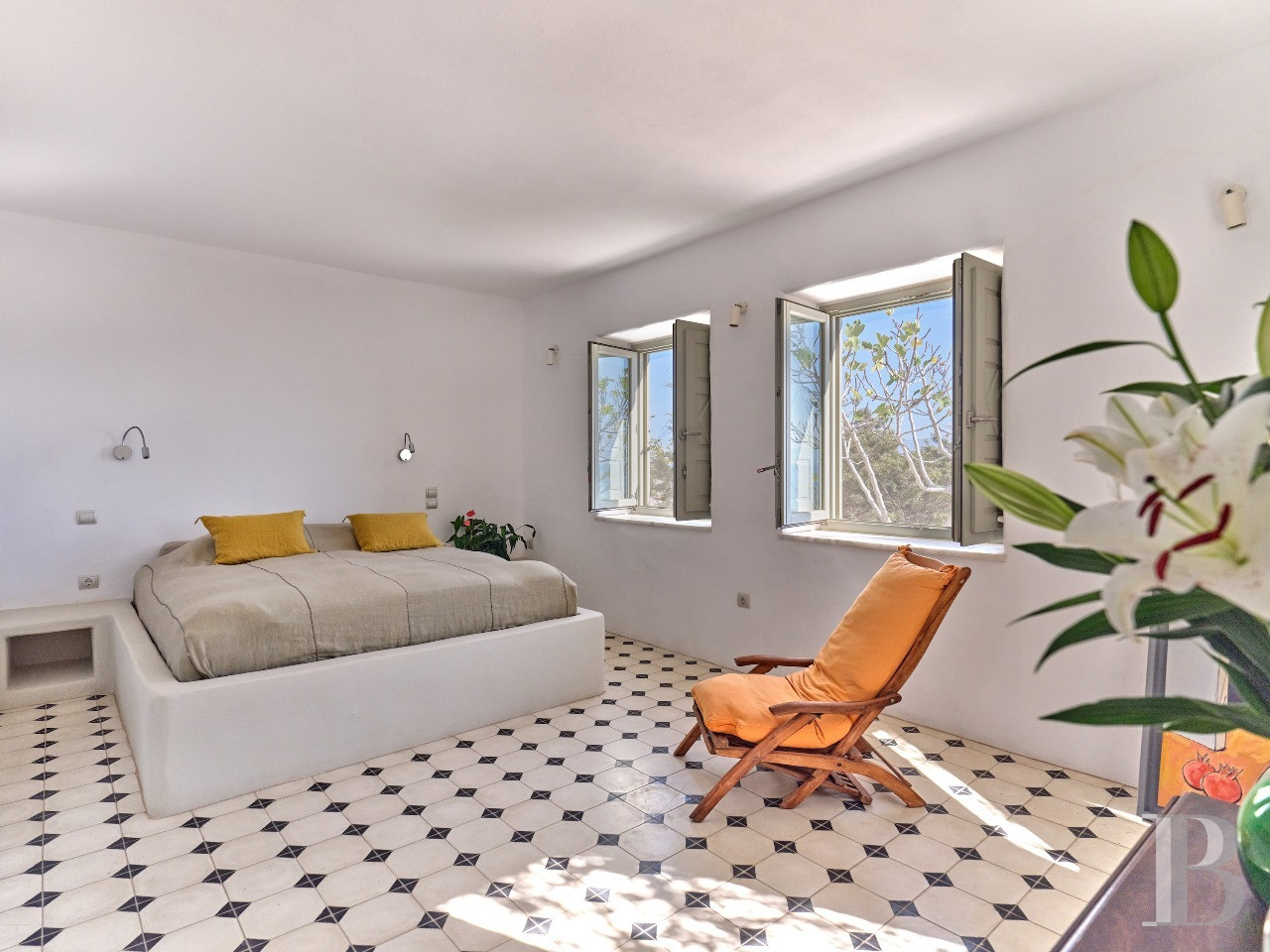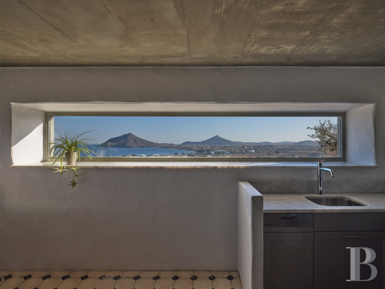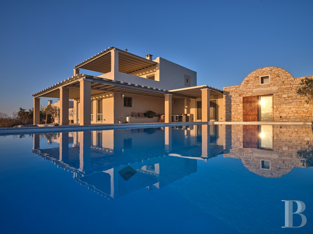 There are villas whose beauty lies less in their architectural display than in the balance they strike between refined modernity and harmony with the island landscape. This is one of them. Its contemporary architecture, discreetly overlooking Isterni Bay, combines the rigour of spacious volumes with the intensity of maritime perspectives. Inside, the generous spaces, panoramic views of the sea and blue sky, and the harmonious separation between the main residence and large guest house by a private chapel create a world that is both intimate and open, where nothing is constrained. The elevated position on the hills of Isterni, a quiet hamlet on Paros, offers the privilege of exceptional sea views in an environment unspoilt by neighbouring buildings. Everything is there, nothing more to add.