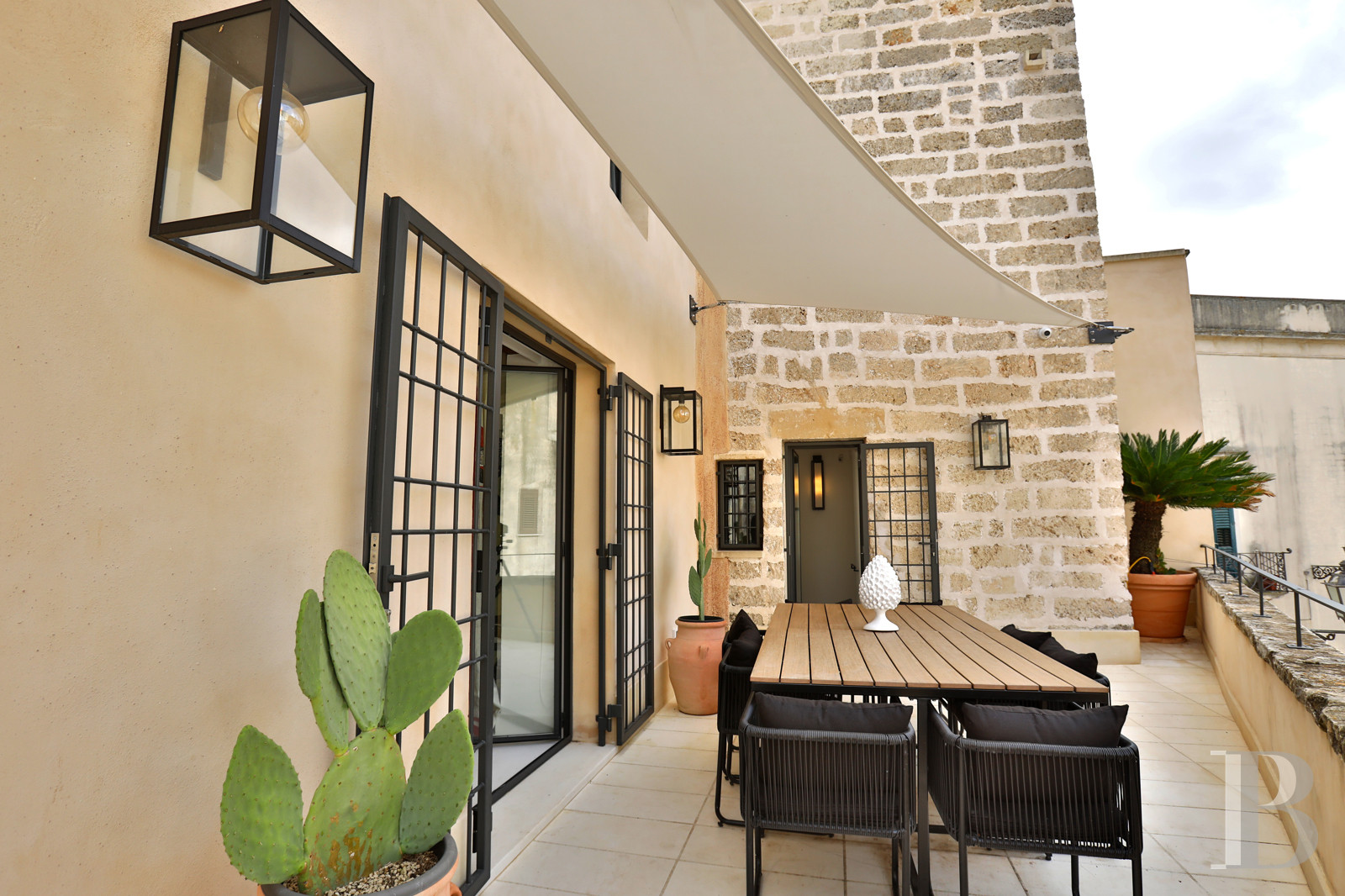 A lively urban setting and remarkable architectural heritage in a city with all amenities: everything comes together to make this former wine press a place to live that makes everyday life enjoyable. Everywhere you look, the view is stunning, overlooking the central square from the first terrace and offering a panoramic view of the rooftops from the roof terrace. Very flexible with its generous volumes and layout possibilities, this is a home that easily adapts to different lifestyles and projects. The original Lecce stone interacts with contemporary features to create a harmonious whole. Just a few minutes away, Lecce with its Baroque architecture and squares, or the Adriatic and Ionian coasts, add to the daily pleasures of city centre living with nearby cultural and seaside getaways.