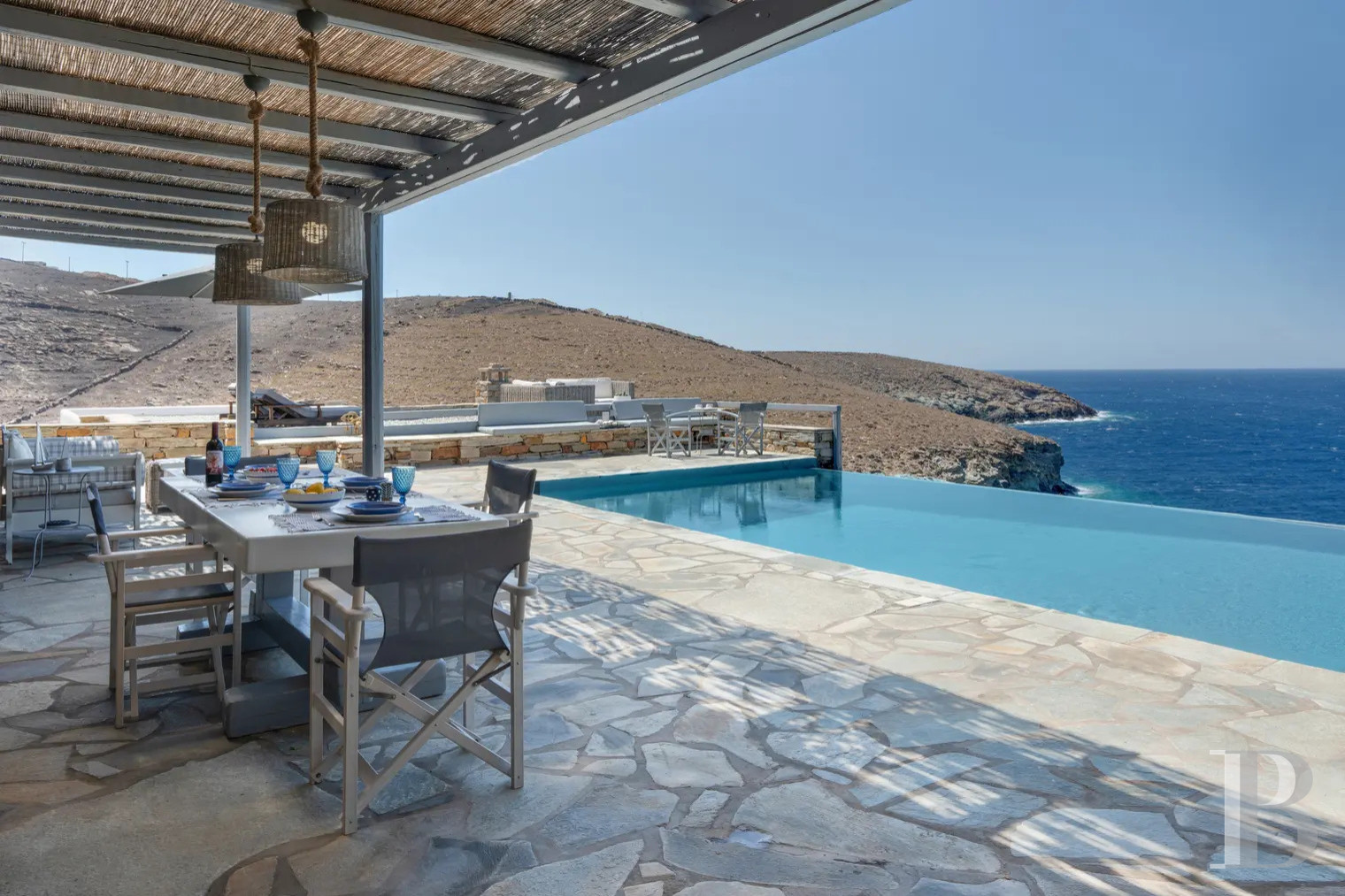 Kea resists. To crowds, to noise, to the obvious. The island guards its secrets with a certain obstinacy, and Koundouros is one of them. Spread over two levels, 175 square metres, three bedrooms, and a terrace that never quite ends; it extends into the air, above the sea, until the eye gives up. The swimming pool, the tranquillity, the beach below — all of this is real and verifiable. Yet what does not appear on any plan is the particular quality of the morning here, when the light arrives from the east and nothing, absolutely nothing, comes to interrupt it.