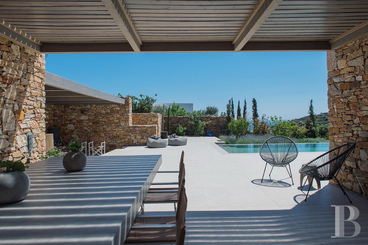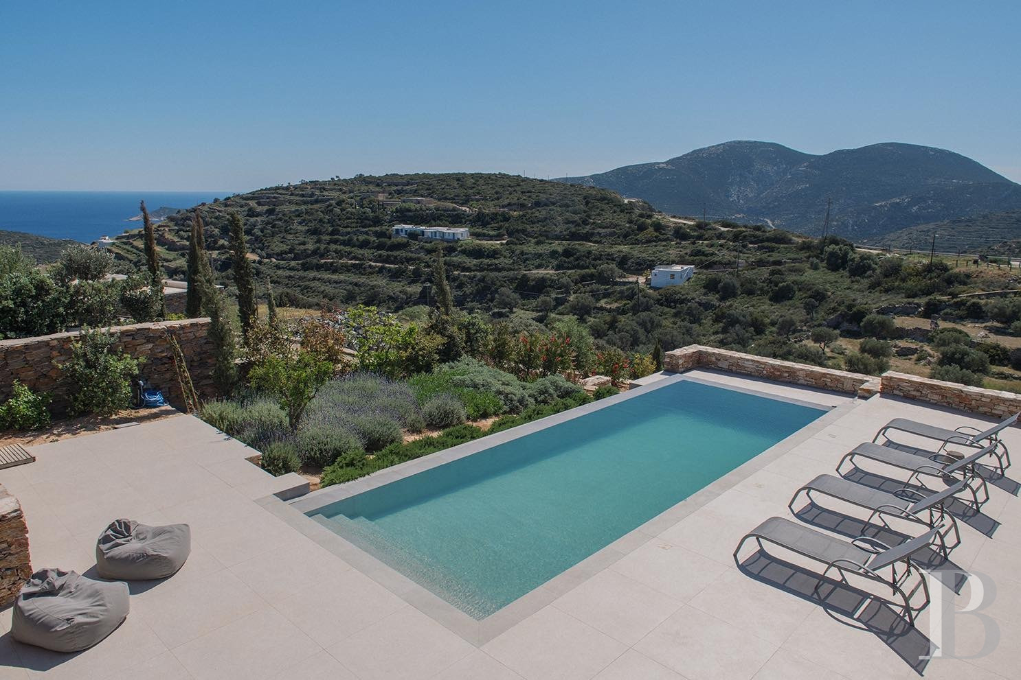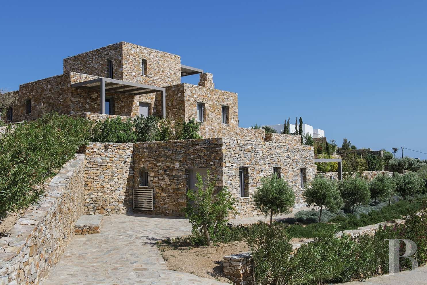 a stone villa with two self-contained guest houses overlooking the Aegean Sea