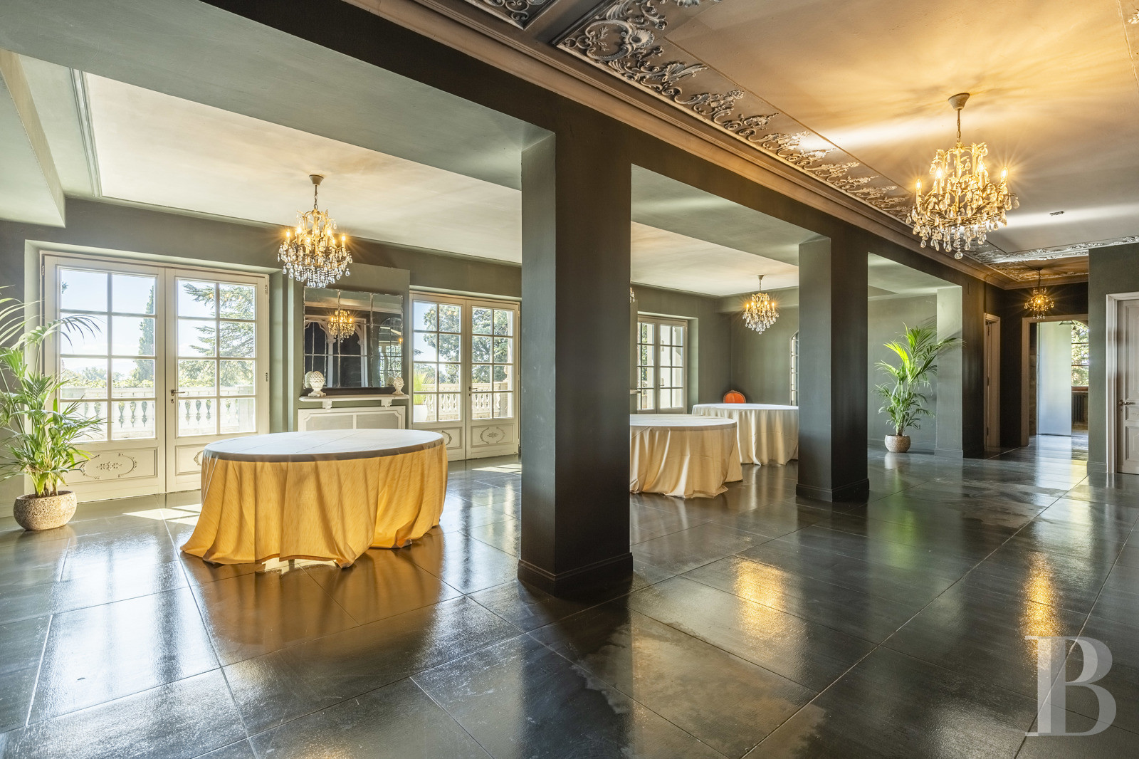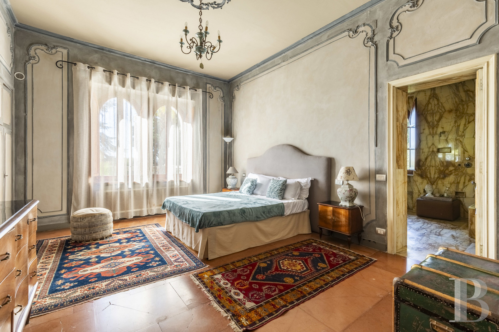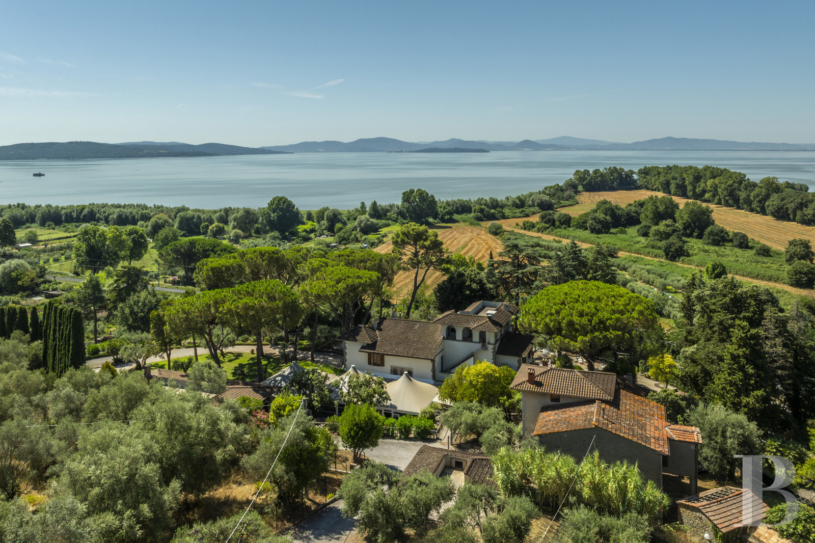 Certain architectural styles embody the spirit of their era. A villa built in the 1950s bears this mark eloquently. It watches over the shores of Lake Trasimeno from the heights, where the views embrace the lake landscape. The layout of the spaces favours light and openness to the lake: large reception rooms on the ground floor and a Carrara marble staircase connecting the levels. The bedrooms are located upstairs. The grounds cover some 2 hectares planted with century-old trees, punctuated by terraces and lawns sloping down to the swimming pool. An outbuilding completes the estate. The property lends itself equally well to private residence or hospitality, its commanding position offering tranquillity and proximity to Perugia and Cortona. The original finishes, preserved over time, give the villa its unique character. It now awaits a discerning eye so that the work undertaken in the 1950s can continue its history between the lake and the Umbrian hills.