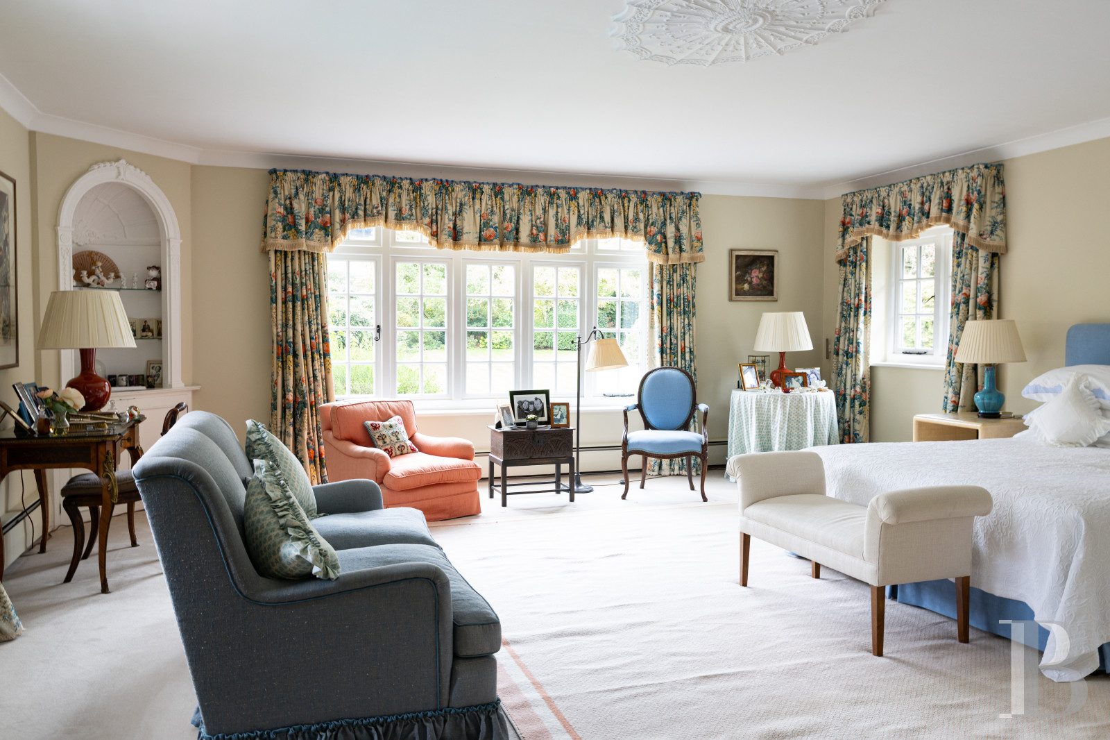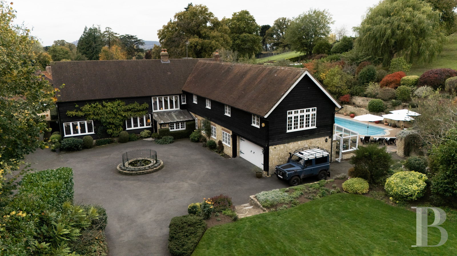 The Surrey Hills have a way of embracing properties that resemble them. Tumblers Court is one such property. Behind a double gate, a driveway leads to a central courtyard where a pond and a fountain mark the threshold between this world and another. The house, whose origins date back to the early 19th century, has stood the test of time without losing its way: the double-height Great Room, the reception rooms opening onto the gardens, and the kitchen with its French windows facing the east and west terraces speak of an era that still knew how to build to last. Five bedrooms, a detached cottage, a swimming pool, a tennis court, some 1 hectare of mature gardens, a vegetable patch and lawns: the property has achieved that balance which only truly lived-in places eventually find.
