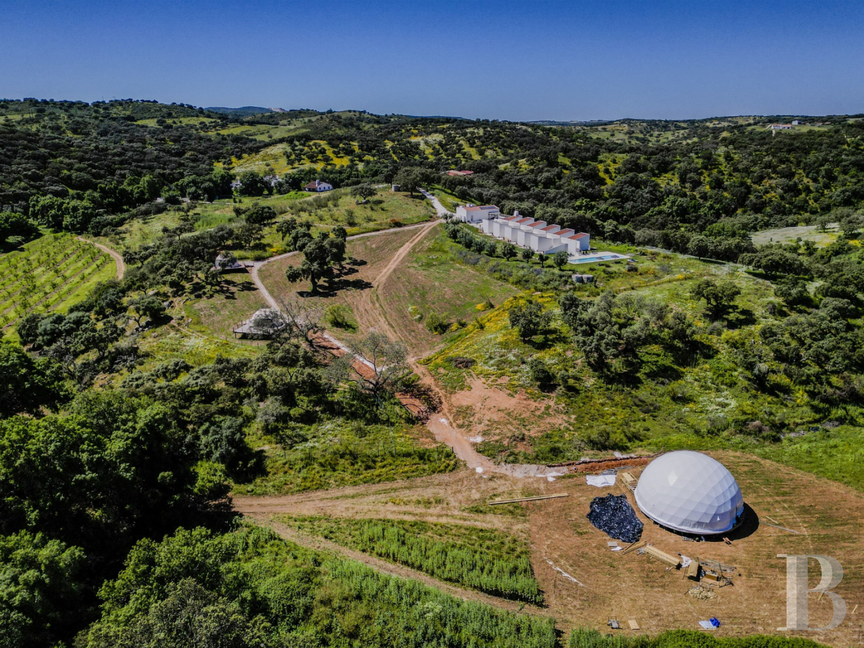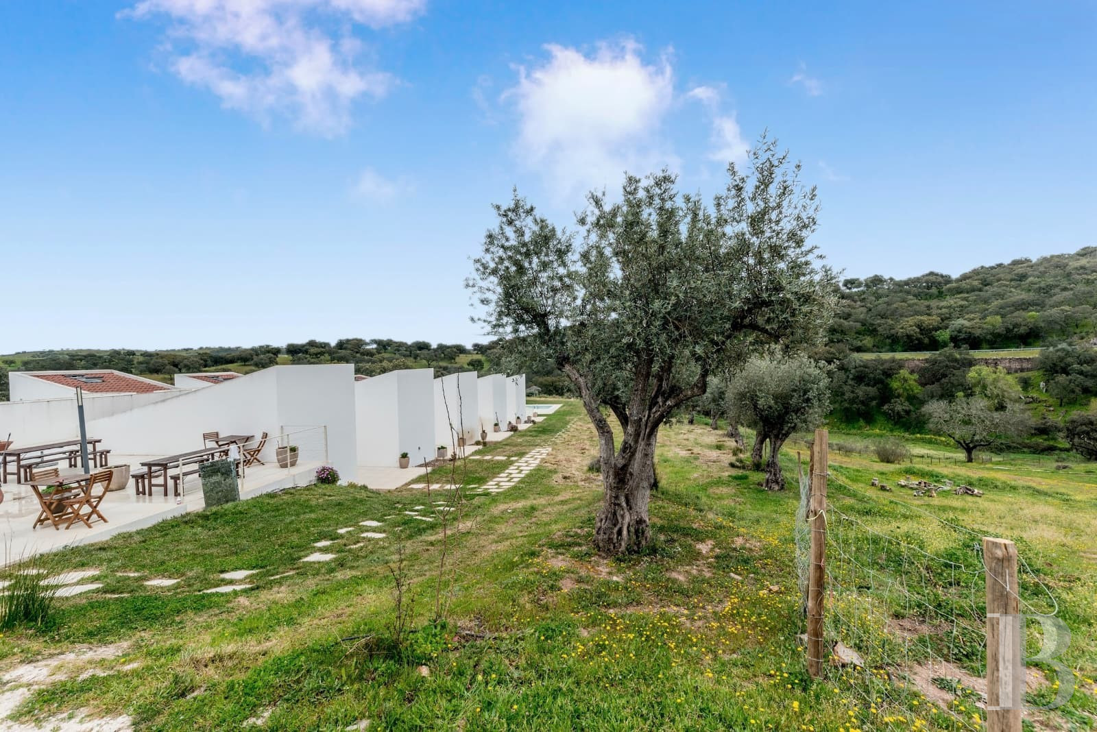 A domain where hospitality unfolds without artifice, between orchards, olive groves and vineyards cultivated for the guests' table. The fourteen accommodations form a discreet village within the 23 hectares, complemented by a 420 m² main house reserved for the owners. Tourist activities are organised around two swimming pools, a dedicated restaurant and technical areas designed to ensure the site's autonomy. The agricultural land feeds the project: produce from the organic vegetable garden, almonds and olives naturally find their way into the kitchens. The proximity of Vila Viçosa and its location on a thousand-year-old Roman road anchor the complex in its Alentejo territory. It offers a balance between a working farm and a well-established hospitality structure, for those who wish to continue this activity or reinvent the uses of this farm-hotel focused on the authentic Alentejo.