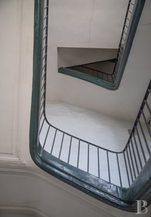 The building dates back to the 17th century and its façade is listed. The main staircase caught the eye of painter Sam Safran, who painted it in every way imaginable. The first-floor apartment revolves around a small private garden, giving occupants the feeling of being in a house.