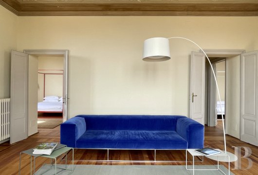 In Italy's Piedmont region, on the border with Lombardy, between snow-capped peaks and the shores of Lake Maggiore, the village of Vignone is one of those places said to be blessed by the gods. In the heart of this small town, the Villa Francioli rises up towards the sky with its ochre coloured walls dotted with blue shutters, surrounded by a luxuriant garden whose many flowering and fragrant plants follow the contours of the land. Inside, the original painted ceilings have been preserved, highlighted by the pure decoration and enhanced by a few contemporary touches. The region has no shortage of cultural attractions, hiking and water sports activities, but it is also tempting to linger in the shade of the villa's palm trees or wisteria and take in the splendid views.